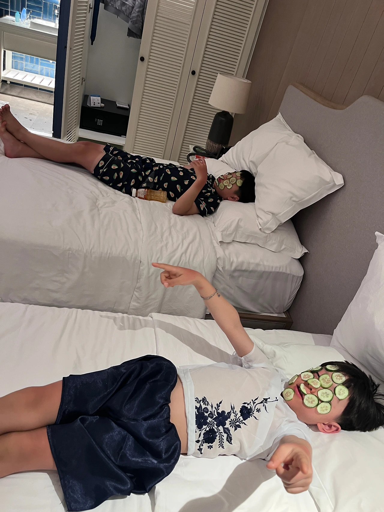 피부를 진정시키기 위해 오이를 마사지를 했다. 슈퍼에서 사 온 오이를 얇게 썰어 뜨겁게 달아올랐던 피부에 붙여주니 시원하다고 말했다. 아이들은 처음 경험해 보는 오이 마사지에 재미있다는 듯 깔깔 웃었다. 여행지에서의 이런 소소한 순간들이 묘하게 기억에 오래 남는다는 걸 나는 알고 있다.