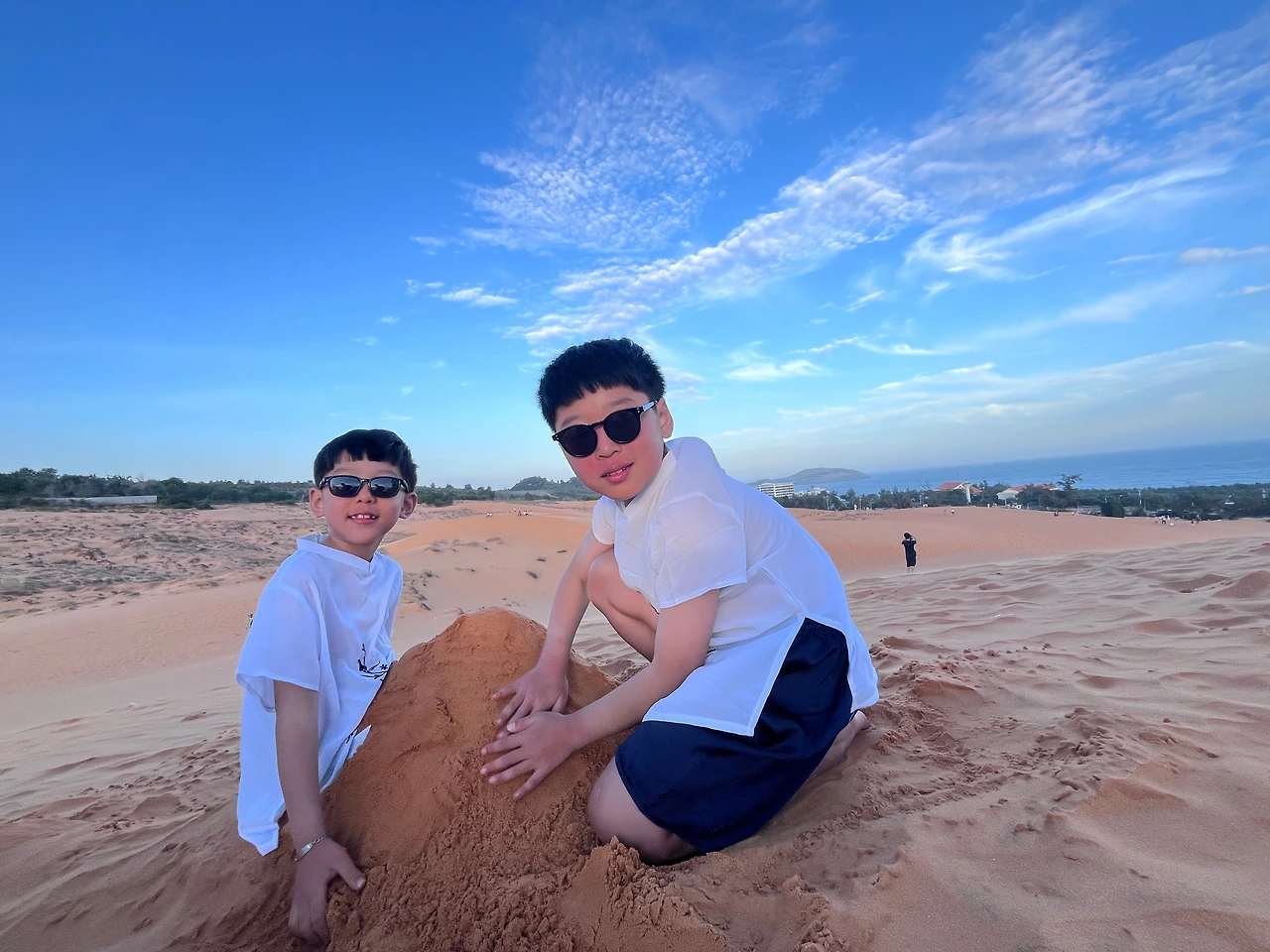 모래 사막에서 한참을 놀고 나서 아이들과 사진을 찍기 시작했다. 하지만 강한 모래바람 때문에 예쁜 표정