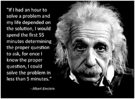 아인슈타인이 "1시간이 주어지면 문제 정의에 55분을 쓰고 해결에 5분을 쓰겠다"라고 말한 것과 일맥상통한다.