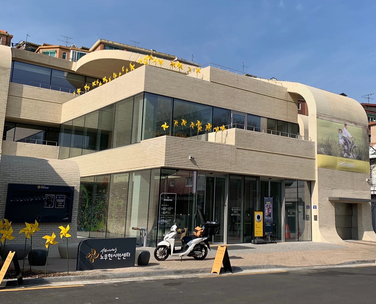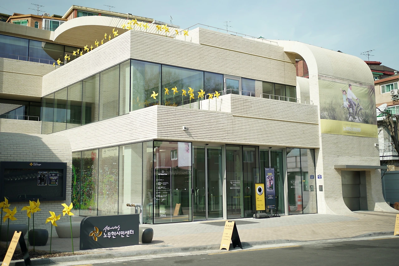 2층 복도 책장에, 이틀 전부터 배송 지연소동 겪어 아직 못 본 '나의 문화유산답사기 서울편'이 비치되어 있었다. 배송 지연되지 않았다면 여기 오지 않고 그 책 안 어디로 갔을 거다. 대답 없는 택배기사로 인해 일정을 바꿔 찾은 노무현시민센터는 공간과 그 안에 있는 사람들이 주는 느낌이 좋다.