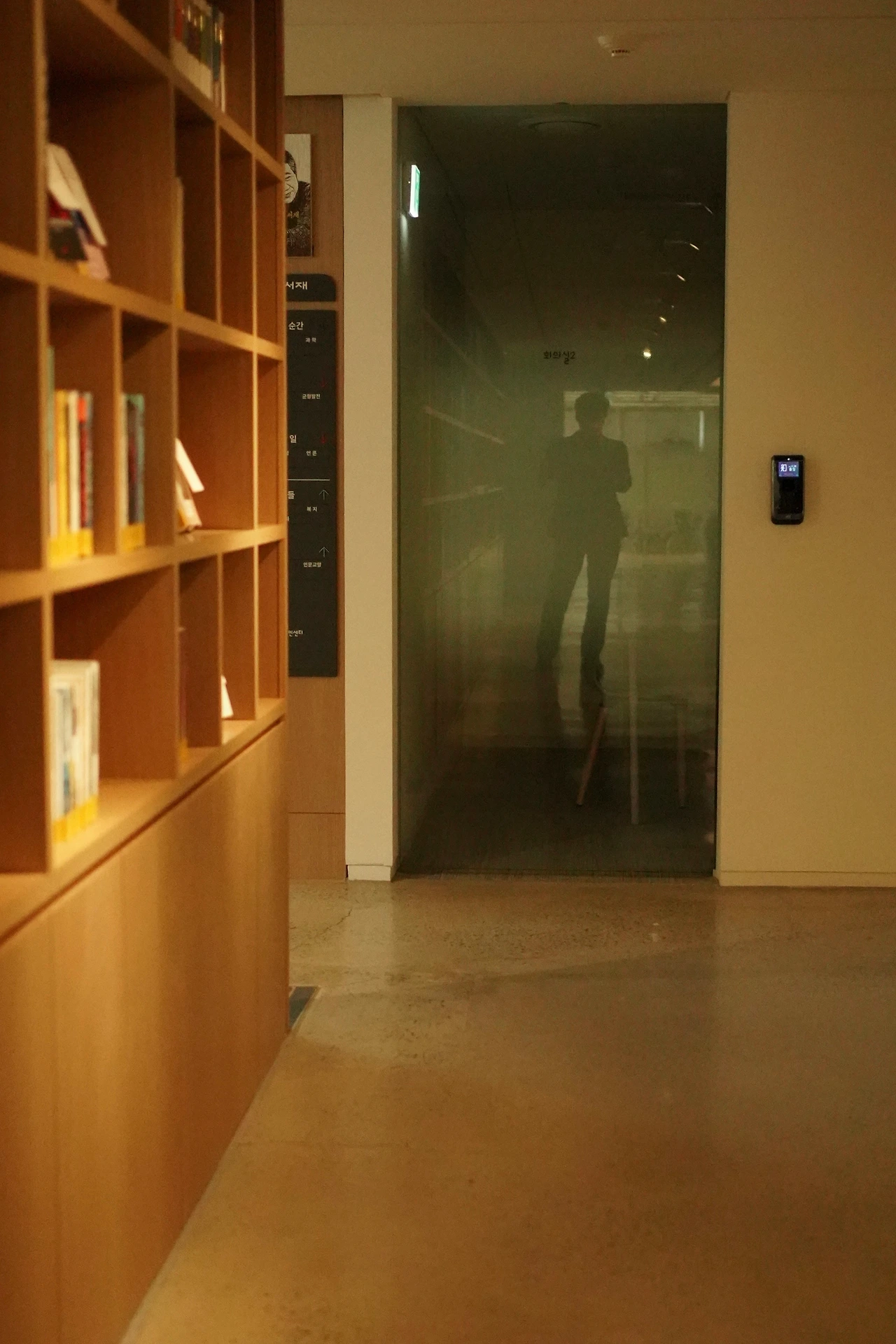 경복궁과 창덕궁 사이 북촌이 있고 북촌 쪽 창덕궁 곁에 센터가 있다. 관광 명소와 가깝고 분위기 좋아 커피 마시러 와도 좋겠다. 자연 채광을 잘 다룬 건물이라 실내는 밝고 맑다. 창 안쪽 맞은편 가장자리는 따뜻하고 포근한 톤 조명으로 우아하게 꾸몄다. 혼자 과한 해석인가 싶지만, 인물에 대한 메타포가 느껴지는 공간이다. 만약 공간을 연출한 사람이 의도한 메시지였다면 충분히 전해졌다. 건축 모르는데, 여기 와 보니 건축도 언어 같다.