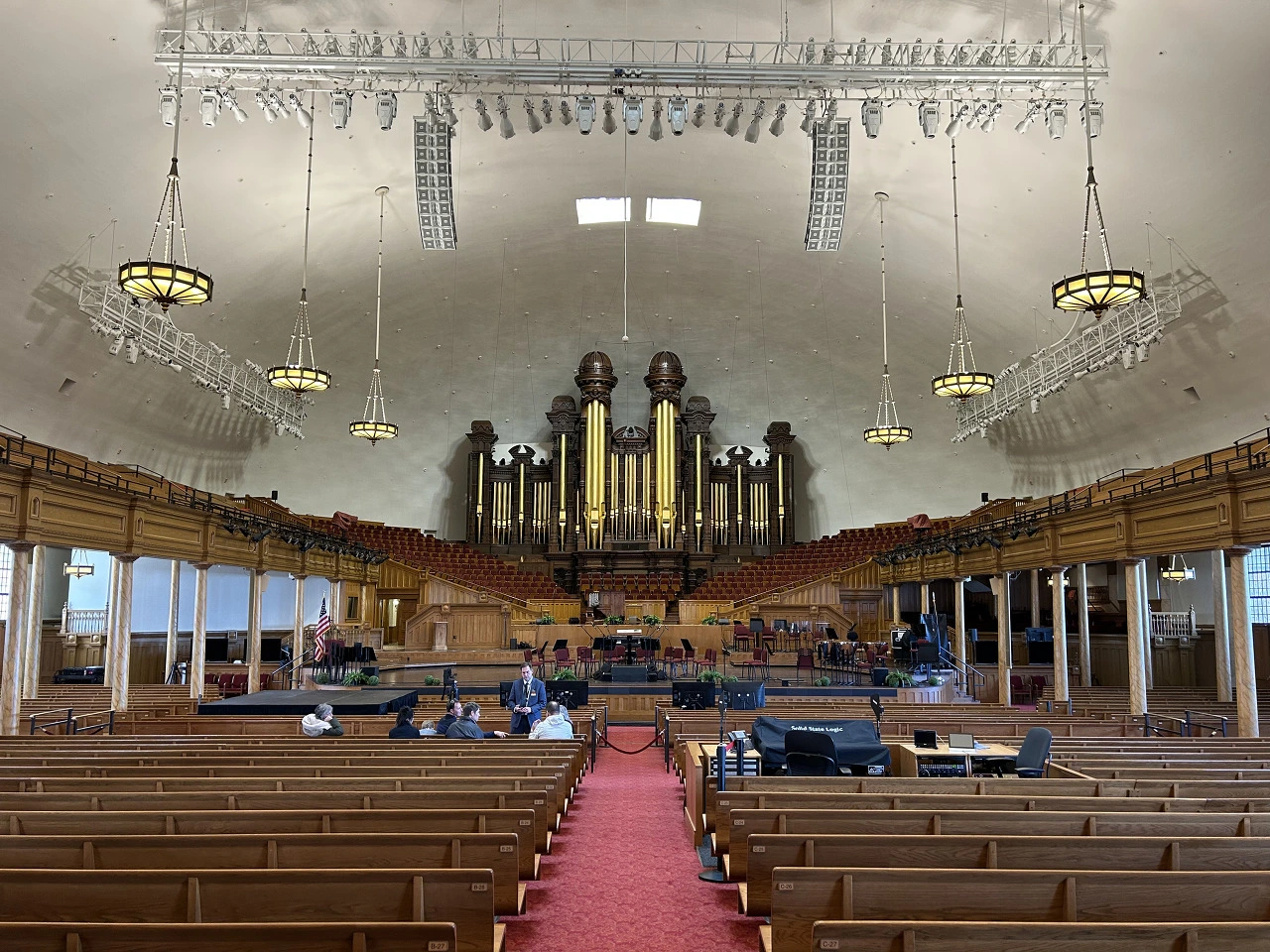 다음은 템플 스퀘어로 가볼까요? 이곳은 몰몬교의 심장이라고 불리는 곳입니다. 몰몬 교도들이 실제로 예배, 기도, 의식을 하는 곳인데요. 이곳에서도 포교 활동을 “투어”라는 이름으로 하고 있는데, 온라인으로 즉석 해서 예약하면 10~20분 내에 선교사의 안내를 받으며 몰몬교를 공부할 수 있는 곳이에요.