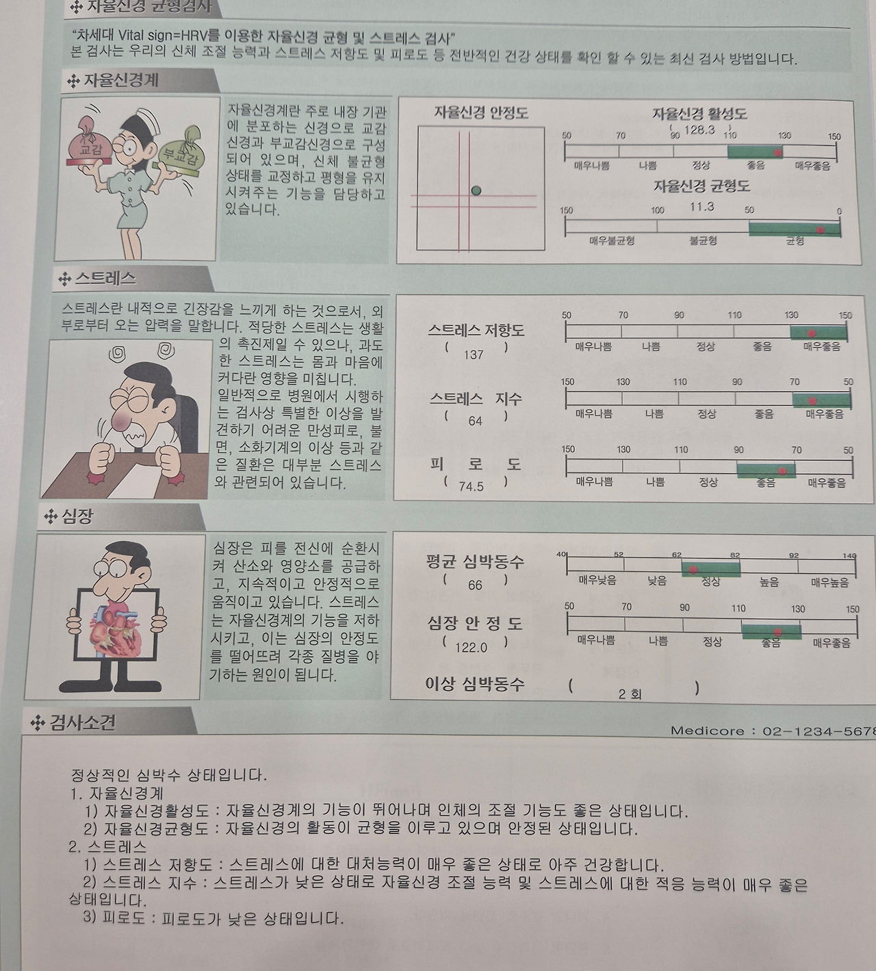 진료실에 들어가기 전 했던 자율신경균형검사는 모두 평균치를 웃도는 매우 훌륭한 수치가 나왔다. '나 이렇게 평온하다고? 의사가 이거 보고 그냥 돌려보내는 거 아냐?' 하는 걱정이 들었다. 하지만 의사는 나에게 약물치료를 권했다. 내가 출력된 (자율신경균형) 검사결과지를 가리키며 의아해하니, 이 검사는 시시각각 결과가 바뀌기 때문에 참고만 한다고 했다. 그는 내 우울의 정도가 약물이 필요한 수준이라고 했다.
