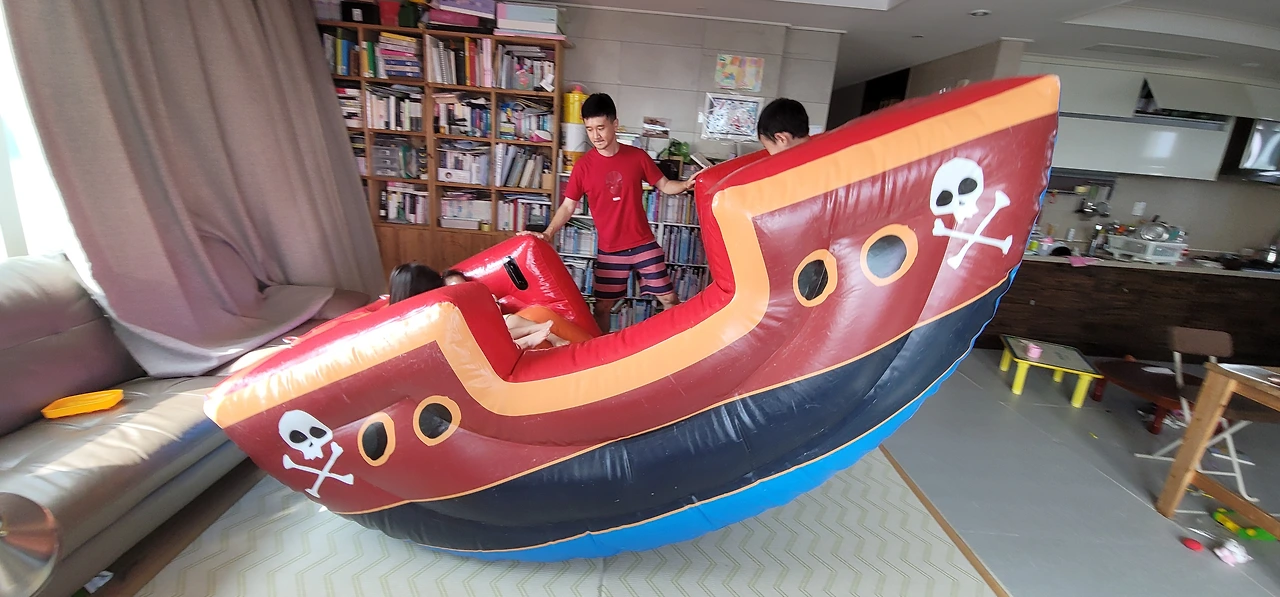 코로나도 무섭지만 집에만 있는 게 더 무서운 다둥이 맘인 나. 작년부터 핫했던 해적 바이킹 에어바운스 대여를 진지하게 고민했다. 하지만 생각보다 비쌌던 대여료에 포기했다가 최근 '힘들어서 도저히 안 되겠다, 비싸도 대여해야겠어.'라고 생각하고 큰맘 먹고 대여신청을 했다.