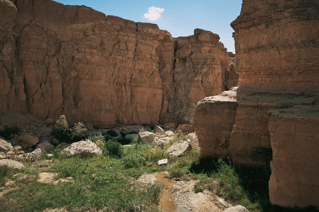 그늘을 찾아 주차한 뒤 곧장 협곡 쪽으로 걸어갔다. 미데스 협곡을 마주하자 우와 소리가 저절로 나왔다. 나름 여러 협곡을 구경해 왔지만 미데스 협곡은 또 다른 매력이 있었다. 협곡 틈에서 자란 야자수가 만들어내는 경치가 새로웠다. 거친 돌이 만들어낸 굽이진 돌길은 마치 영화 속에서 묘사하는 화성을 보는 듯했다.