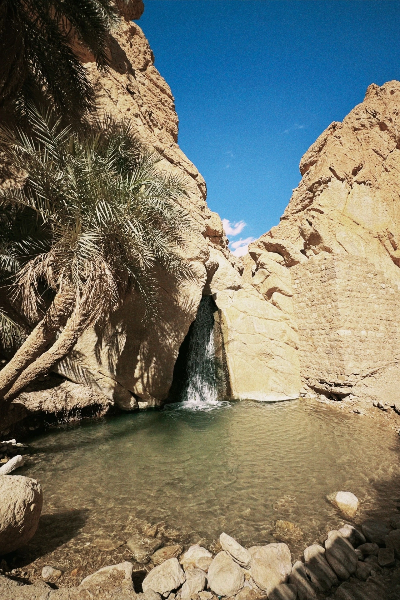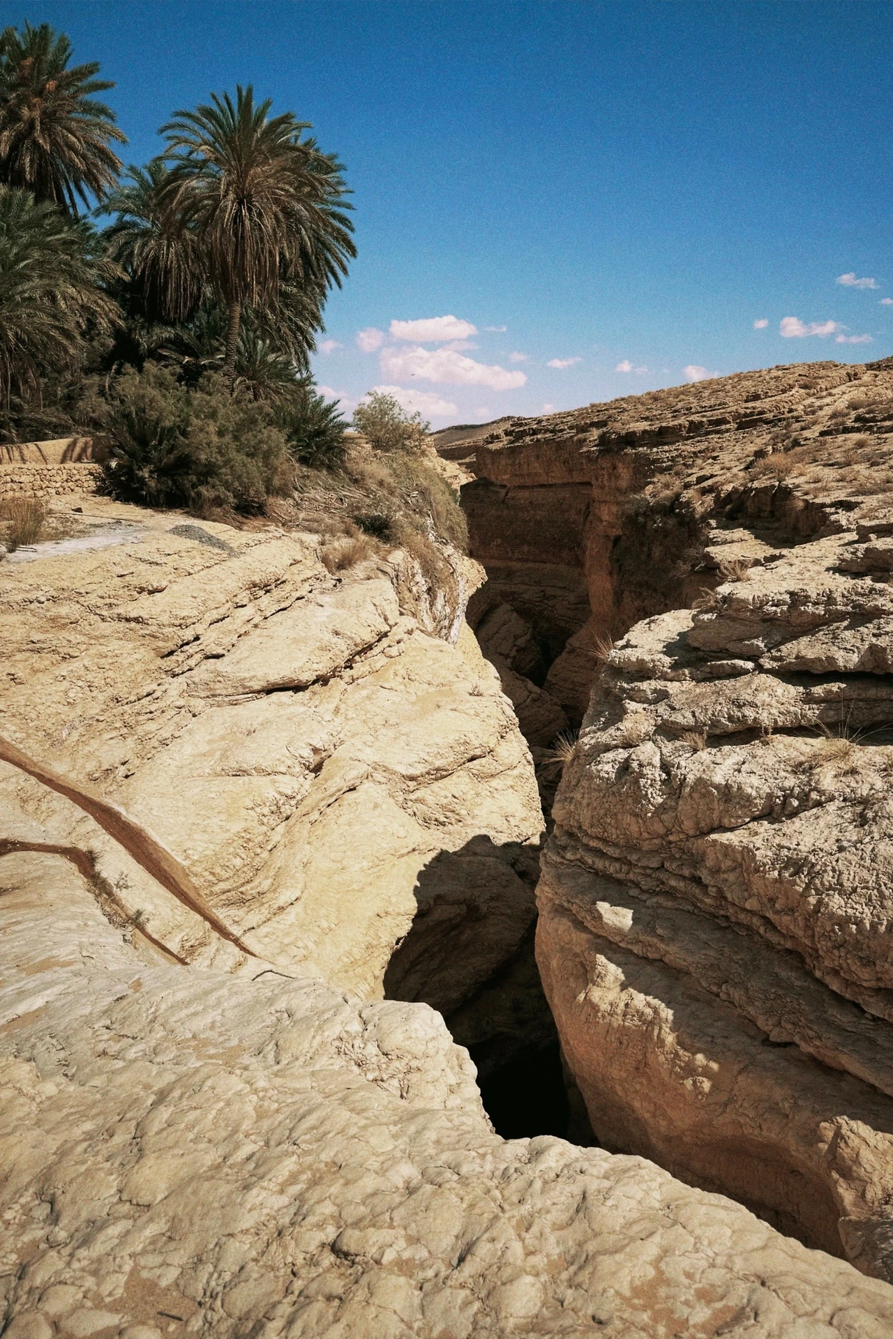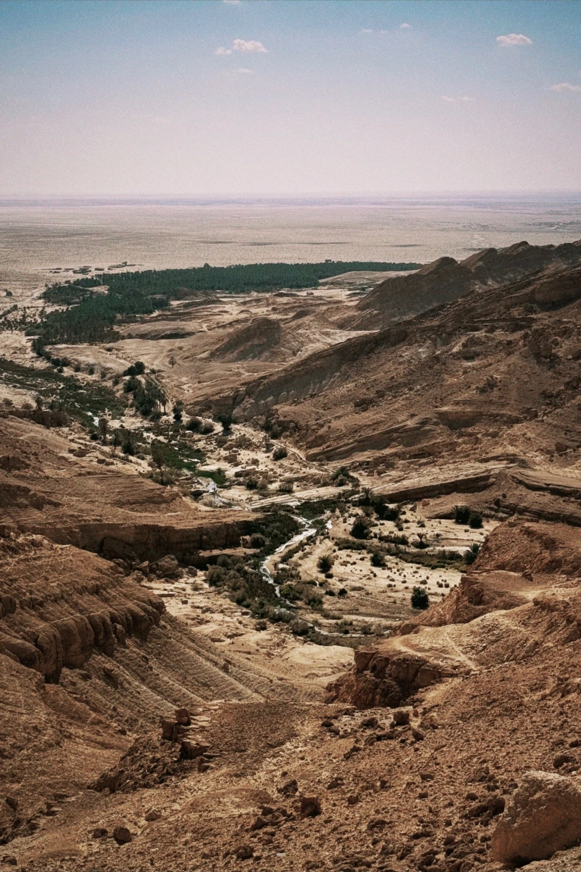 차를 타고 가다 우연히 'PHOTOS'라고 써진 팻말을 발견했다. 주차하는 곳도 마련되어 있어 잠시 정차했다. 차에서 내려 보니 협곡과 어우러진 오아시스가 장관을 펼치고 있었다. 모래와 돌만 가득한 땅에 자리한 풍요로운 오아시스가 웅장했다. 나중에 찾아보니 이곳은 타막자 오아시스(Tamagzha Oasis) 일대였다. 튀니지 여행 중 만났던 절경 중 가장 기억에 남는 곳이기도 하다.