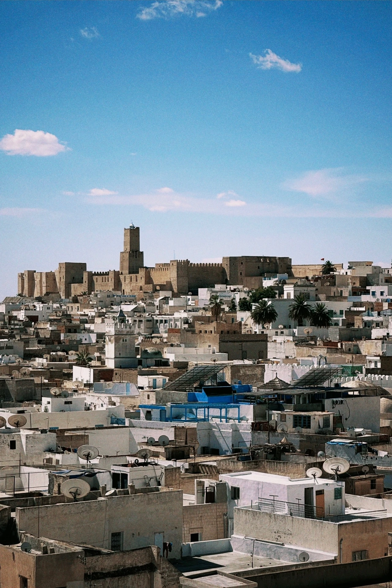 시원한 바람을 맞으며 즐기는 경치가 좋아서 꽤 오랜 시간을 요새 꼭대기에서 머물렀다. 유난히 푸르렀던 하늘과 상아색 도시 풍경이 정말 잘 어울렸다. 튀니지 사람들이 건물을 상앗빛으로 짓는 건 푸른 하늘과 잘 어울려서 그런 게 아닐까 싶었다.