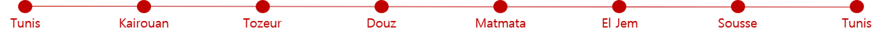 원래도 여행 일정을 조금 고되게 짜는 편인데, 기대했던 여행지라 더 알차게 계획했다. 많은 여행객들이 이용하는 튀니지의 대표 대중교통인 '루아지(Louage)'로는 한정된 휴가 기간 안에 원하는 곳을 다 돌 수 없을 것 같았다. 추석을 붙여서 낸 휴가였지만 튀니지를 돌고 이탈리아까지 갈 계획이었기 때문에 시간이 촉박했다. 고민 없이 차량을 렌트했고 카이로우안(캐루안), 토죄르(토주르), 두즈(도우즈), 마트마타, 엘젬, 수스, 튀니스를 다 돌 수 있었다. 튀니지에 다녀온 분들은 경악할 일정일지도 모르겠다. 정확한 일정은 아래와 같다.