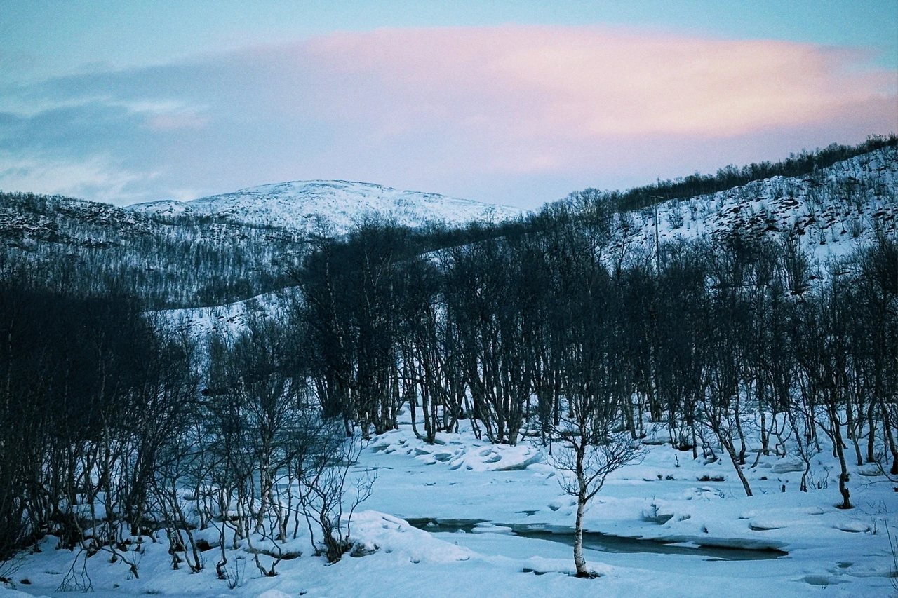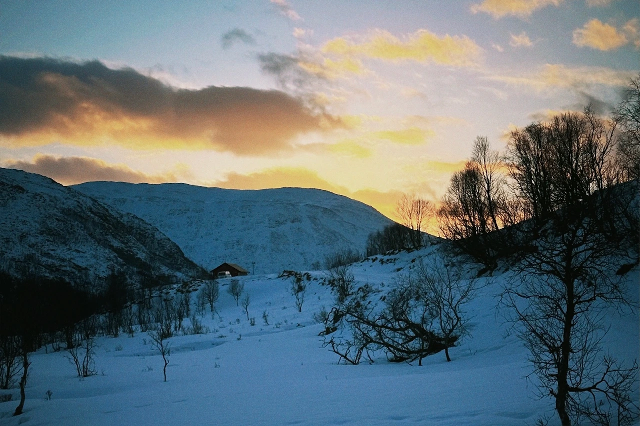 그러나 한참을 걸어가도 딱히 특별한 장소는 보이지 않았다. 눈 덮인 산만 펼쳐져 있을 뿐이었다. 게다가 오후 1시가 조금 넘은 시간이었지만 산 너머는 벌써 노을빛으로 물들고 있었다. 더 어두워지기 전에 순록이 풀을 뜯고 있는 쪽으로 가야 할 때였다. 우리는 서둘러 농장 주변 구경을 마치고 순록이 있는 쪽으로 방향을 틀었다.