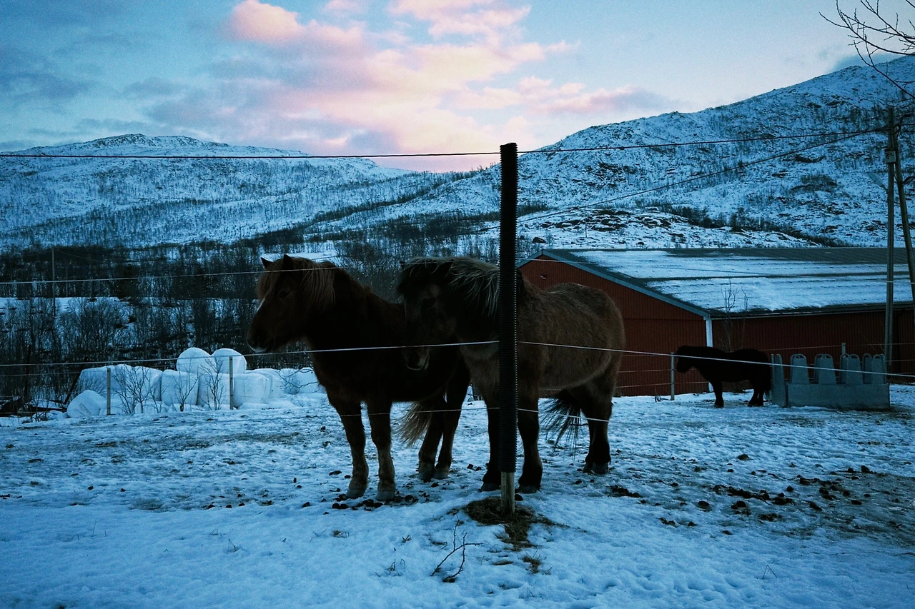 왠지 발길이 닿는 곳으로 가니 작은 농장이 나타났다. 말 몇 마리가 보였는데 잠을 자고 있는 건지 얌전히 서 있었다. 우리나라에서 보던 말들과 다르게 체구도 작고 털도 두텁게 덮여 있었다. 북실북실한 털은 귀엽기만 한 게 아니라 따뜻해 보였다. 나중에 찾아보니 노르웨이안 피오르 말(Norwegian fijord horse)이었다.