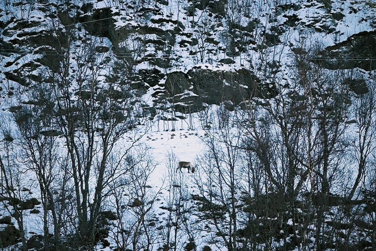 전날 방문했던 Kvaløysletta에 갈 때보다 창밖 풍경이 훨씬 멋졌다. Kvaløya 섬 입구에서 섬 가운데를 가로질러 반대편으로 가는데, 이때 정말 정말 멋진 설경이 펼쳐졌다. 겨울왕국에 와 있는 것 같았다. 섬 반대편으로 넘어오니 풀을 뜯고 있는 순록들도 보였다. 드디어 순록을 두 눈으로 확인한 것! 즉흥적으로 온 곳이지만 정말 잘한 선택이었다.