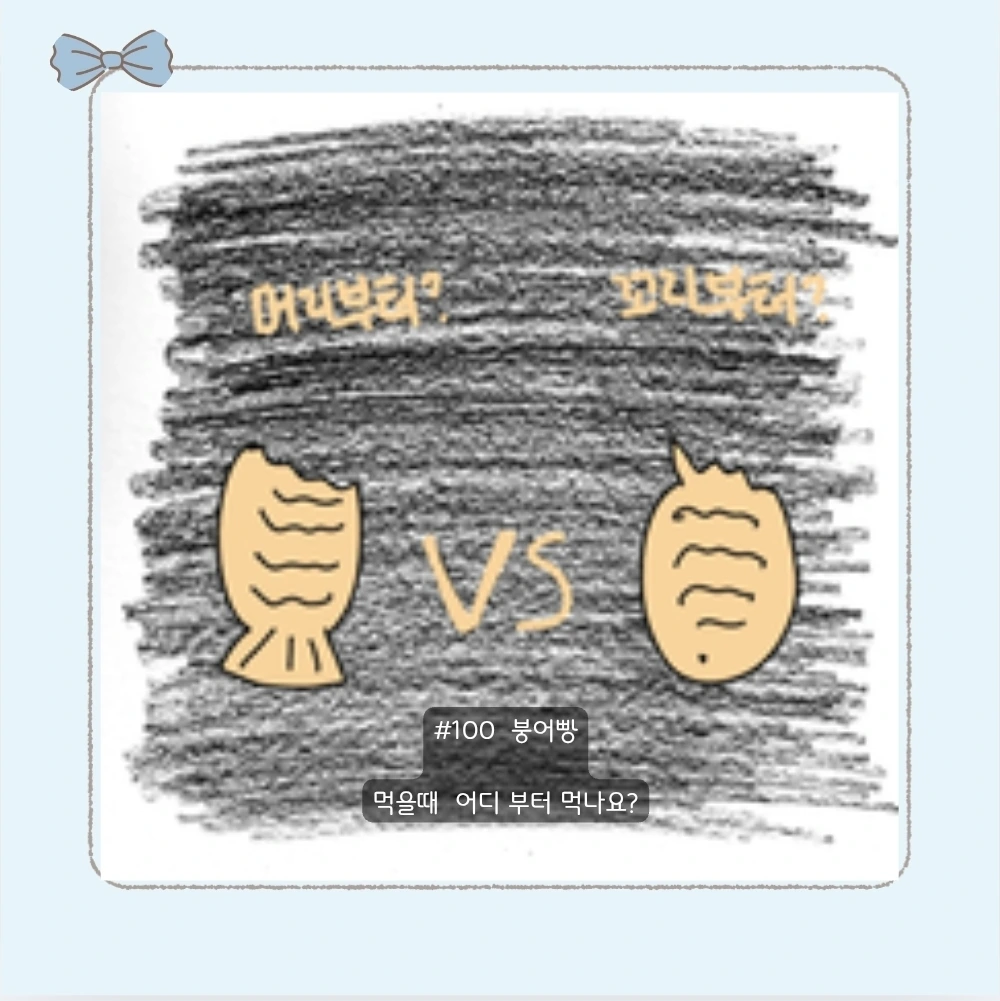 오늘은 결국 머리부터 한 입 크게 베어 물었다. 팥이 가득 찬 붕어빵 머리에서 퍼지는 뜨거운 달콤함에 추운 날씨도 잠시 잊혔다. 그런데 먹다 보니 문득 생각했다. 꼬리를 먼저 먹었더라도 붕어빵은 결국 이 따뜻하고 달콤한 맛으로 나를 채워줬을 것이다. 삶의 선택도 그렇지 않을까? 무엇을 먼저 하든, 그 선택이 나를 행복으로 이끈다면 그것이 정답일 것이다.