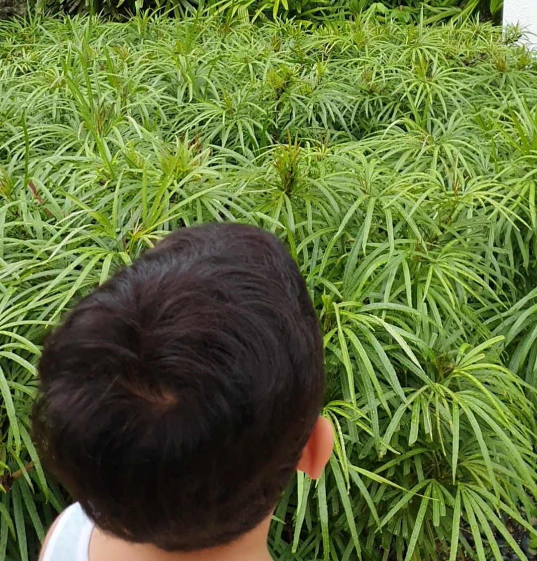 심심해하는 아들을 데리고 아파트 단지로 산책을 나갔습니다.