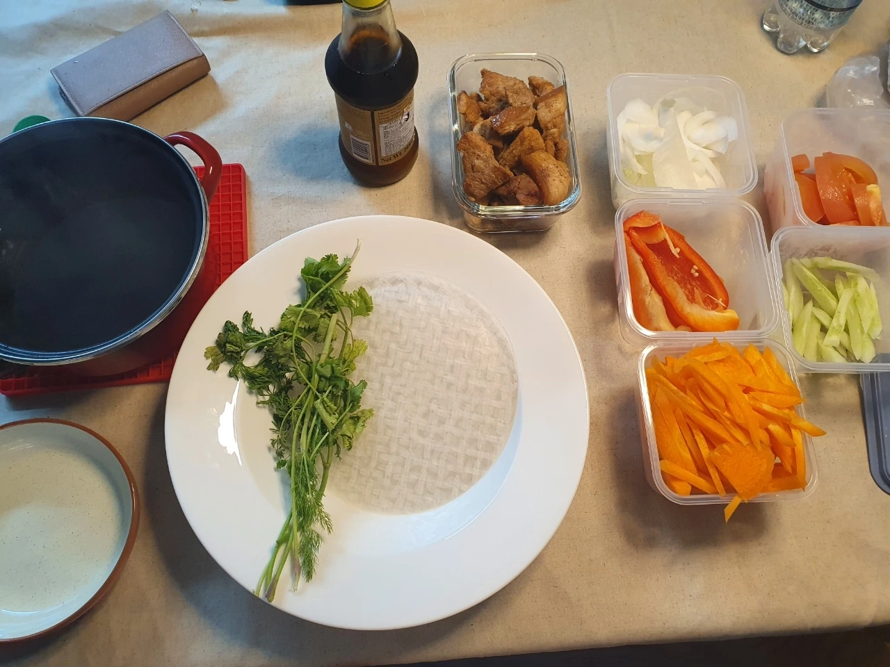냉장고를 비우겠다는 의지 덕에 피시소스와 라이스페이퍼를 산지 사개월만에 개봉했다.