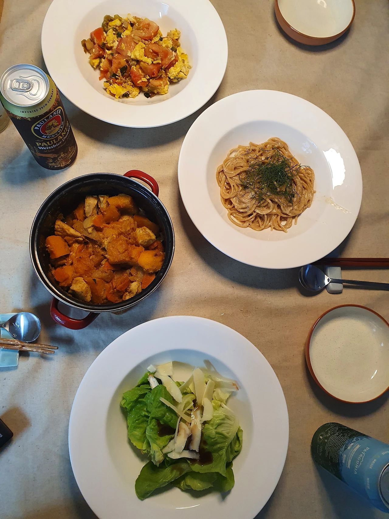 이 날부터 새로운 재료를 꺼내 요리하기 시작했다. 일단 냉동닭가슴살을 꺼내 단호박에 볶았다. 얼렸던 명란을 꺼내 파스타도 만들었다. 조금이나마 냉동실에 여유가 생기니, 그것만으로도 기분이 좋았다.