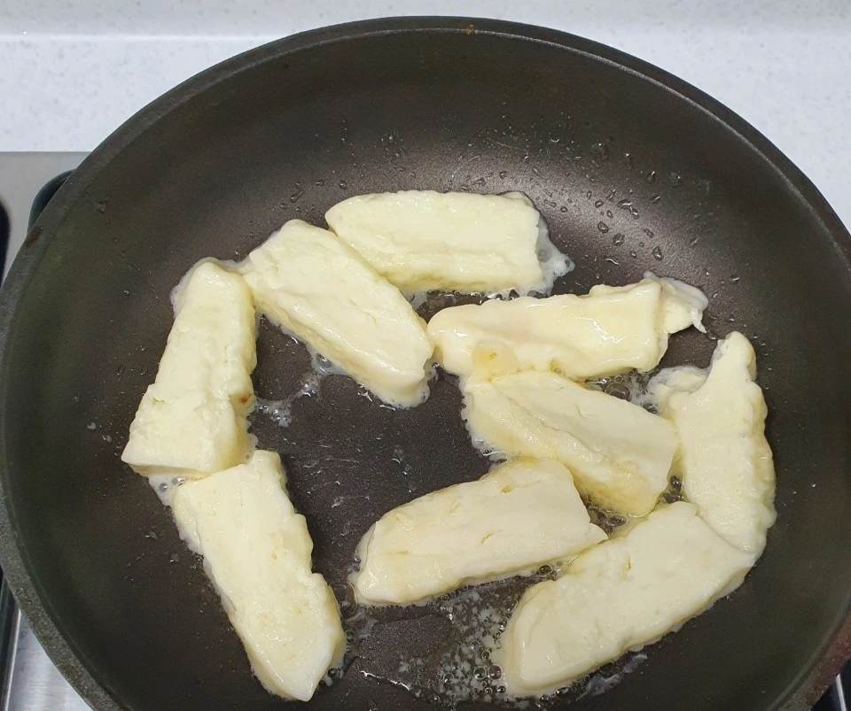 기름을 안넣어도 기름기 줄줄 흘러나오는 구워먹는 치즈. 유통기한이 지나서 구워서 냉동에 넣었다. 조리하면 유통기한이 다시 셋업된다고 믿고있다.