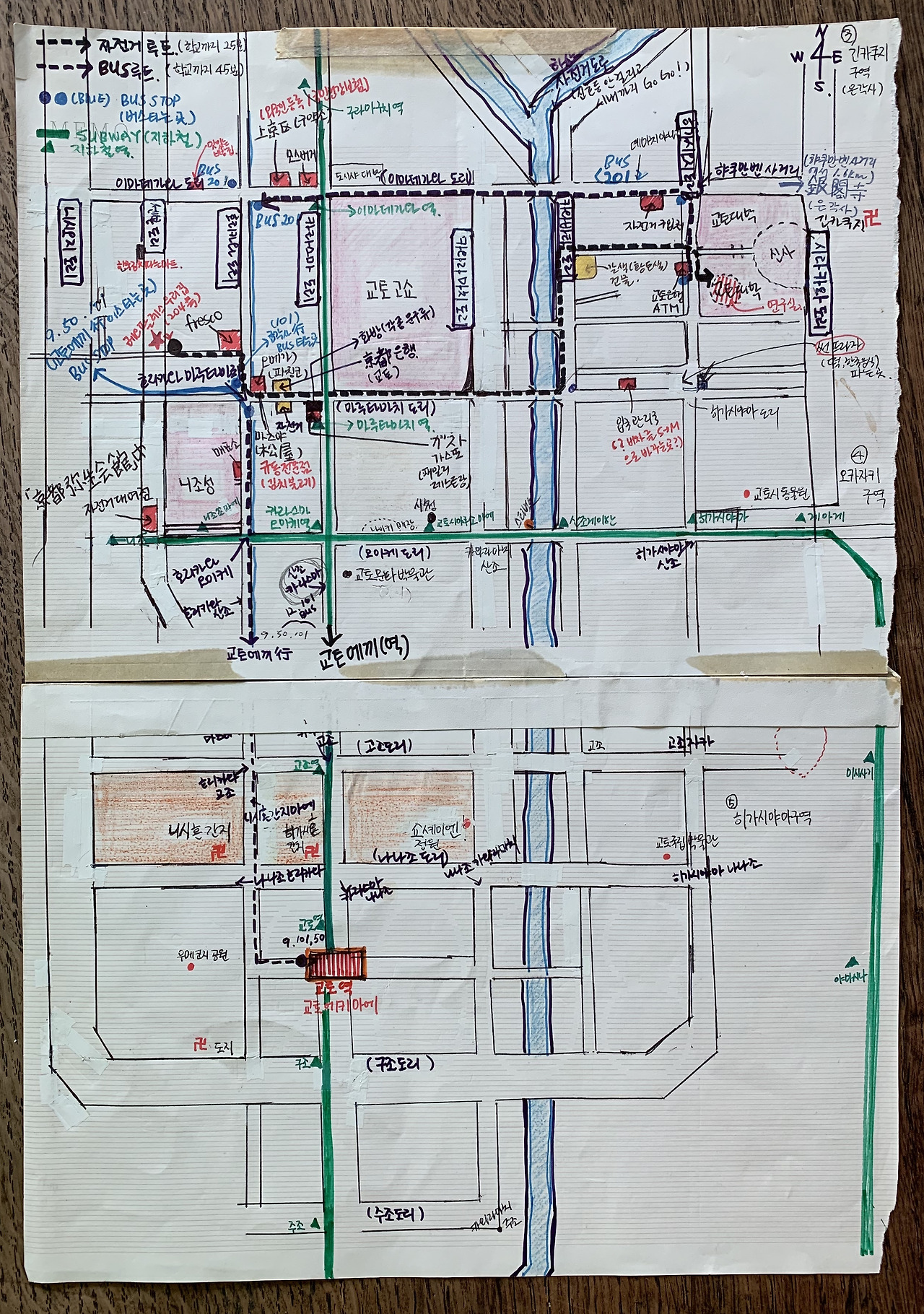 ‘아내의 지도’는 외국 생활이 처음이었던 아내를 위해 자전거로 골목을 누비며 그렸던 ‘교토대학교 통학 지도’이다. 자전거 수리점과 식료품점, 자전거 통학 루트, 버스 노선, 외국인등록소, 맛집, 은행, 문구점 등이 담긴 나름 교토가 낯선 유학생을 위한 친절한 안내서로 그렸다. 그때는 참 대단했지. 이런 지도를 그릴 생각을 다 하다니… 덕분에 이번 여행의 콘셉트가 정해졌다. 2008년 남편이 그린 ‘아내의 지도’가 2024년 딸아이가 따라 걷는 ‘엄마의 지도’가 된다.