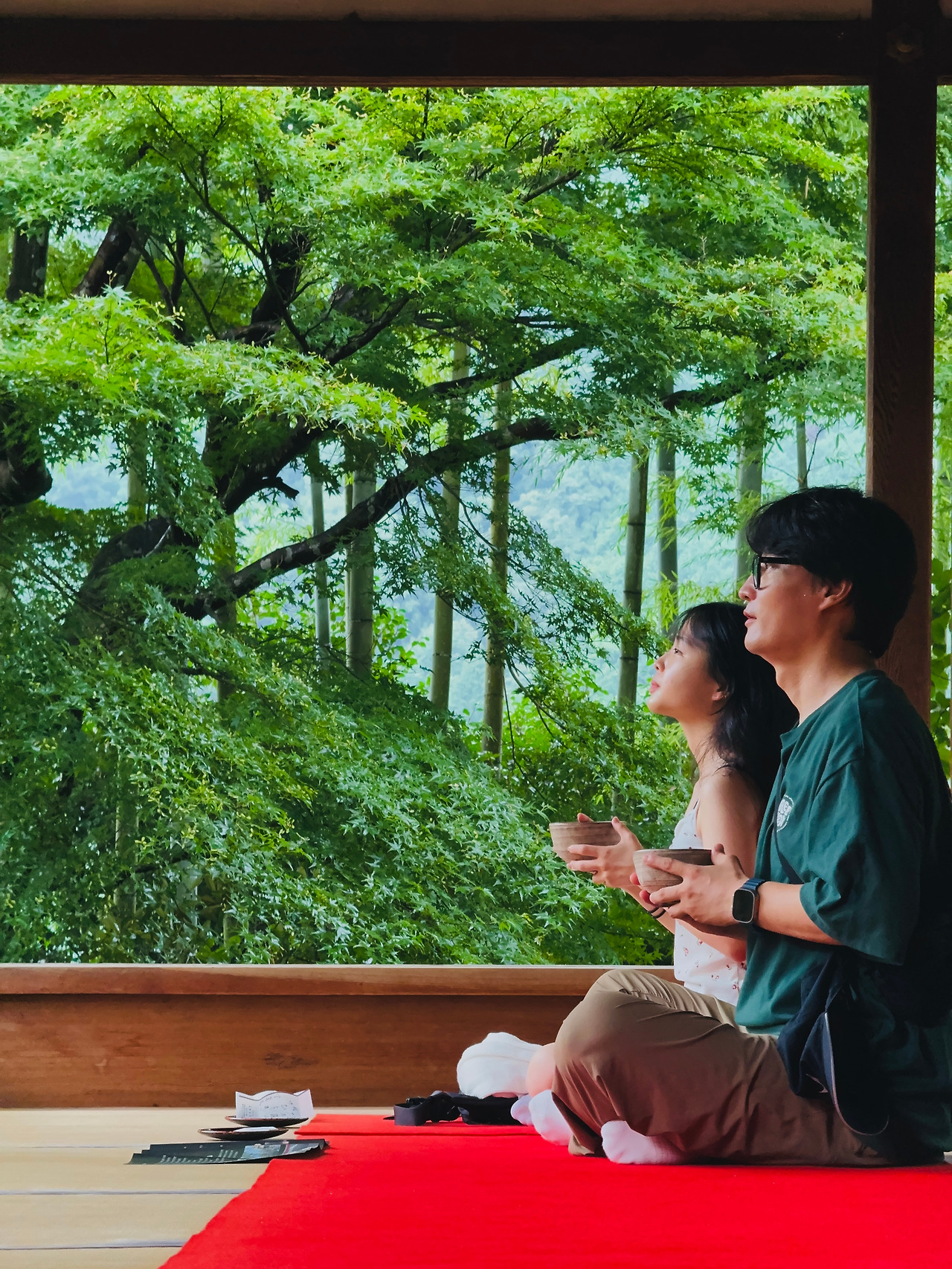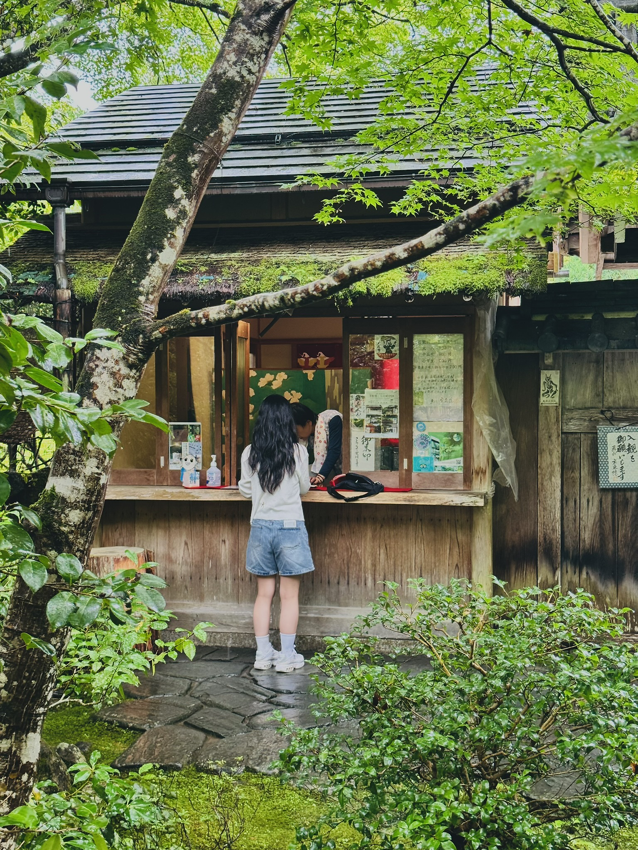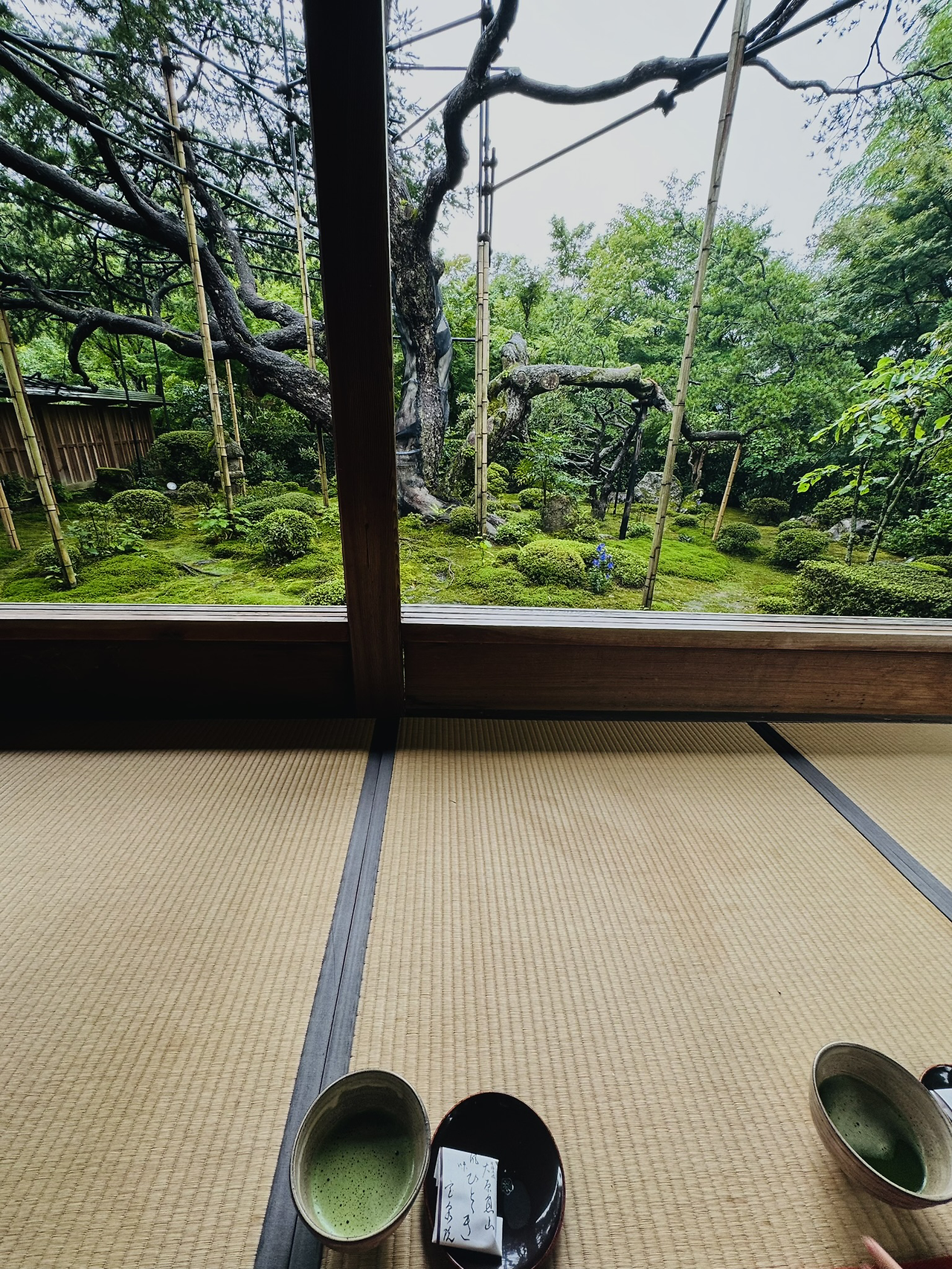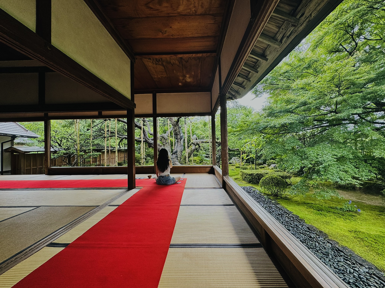 주말 일정으로 잡았다가, 한국으로 돌아오기 하루 전(월요일) 일정으로 변경해 다녀온 교토 외곽(교토역에서 버스로 1시간 남짓 거리)에 위치한 '액자정원'으로 유명한 '호센인'이다. 몇 년 전까지 일본사람들만 찾던 외진 곳이었는데 얼마전부터 관광객에게까지 알려지면서 이제는 제법 찾는 이가 많아졌다고 한다. 구글맵으로 찾아갔어도 입구를 찾는데 조금 애를 먹었을 정도로 아직은 대중적인 관광지는 아니지만 이제 얼마 남지 않아 보인다. 입장료가 있는데, 마루에 앉아 액자정원을 감상하다 보면, 예의 바른 직원분께서 무릎을 꿇고 차와 떡을 내어 놓고 가신다. 우리가 갔던 날은 월요일에 비도 추적추적 오는 날이어서 그런지 이곳의 고요한 정취를 충~분히 느끼고 돌아올 수 있었다.