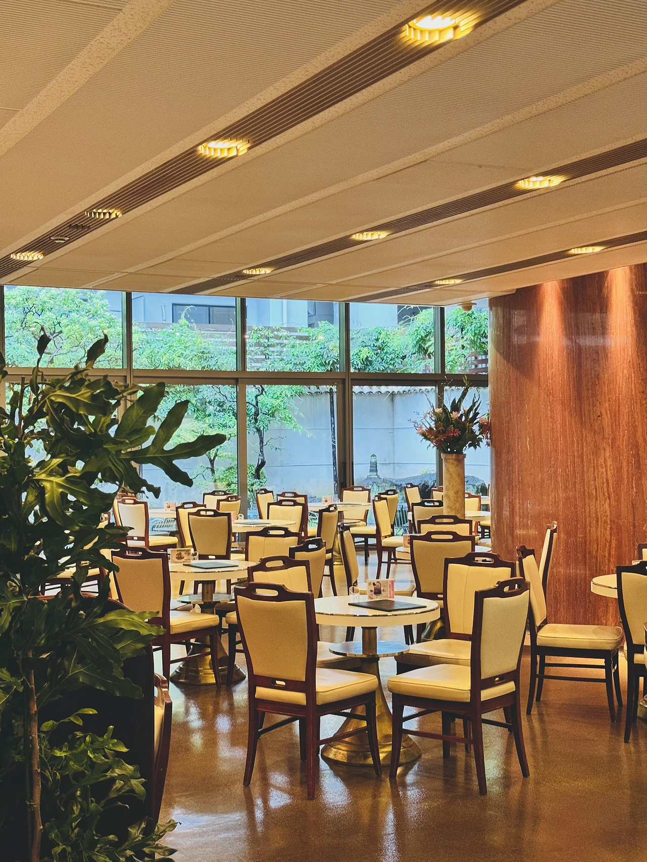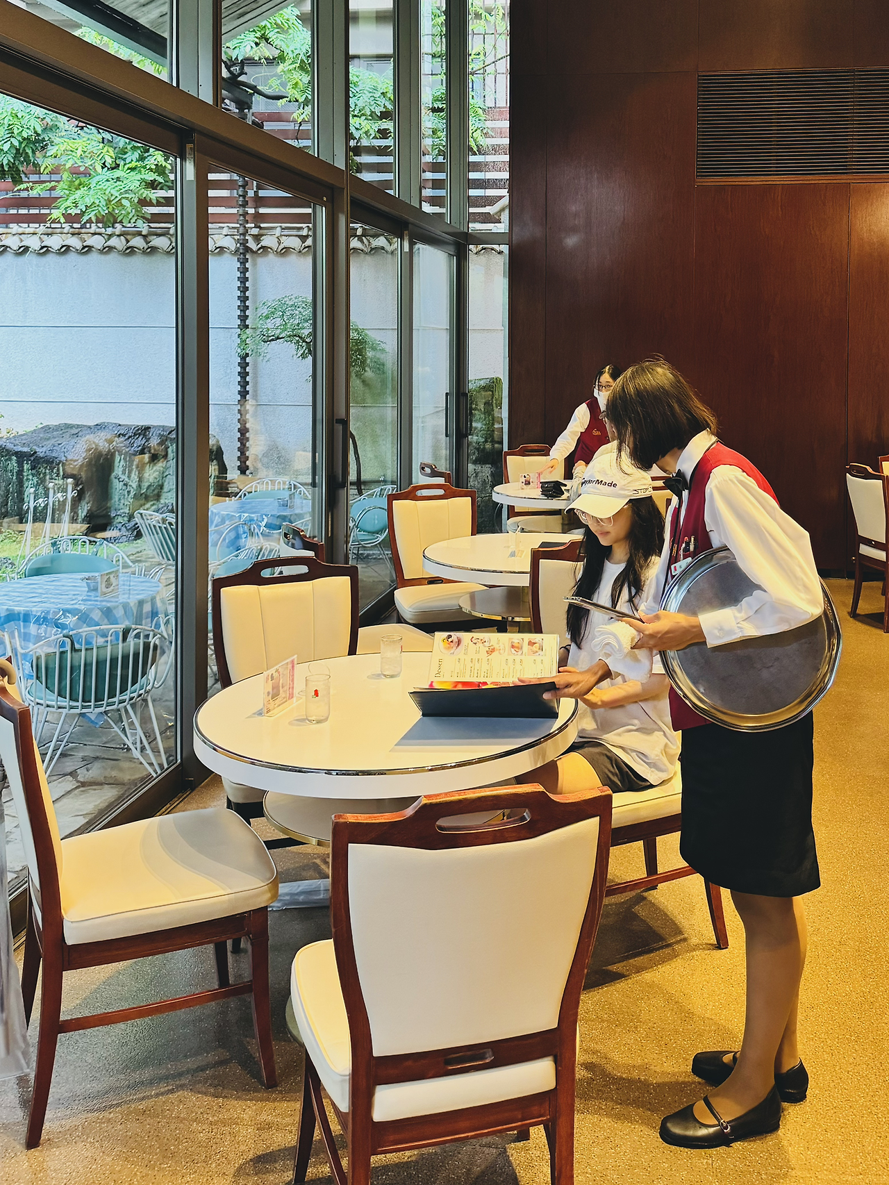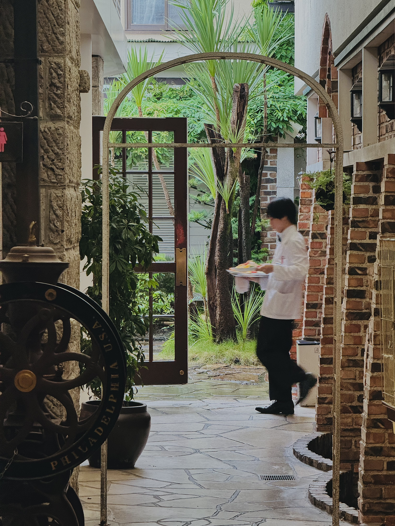 비 오는 아침 동네 마실 가듯 편한 복장으로 찾아간 이노다커피는 정말 훌륭했다. 이곳은 동네 시니어들과 함께 자연스레 어우러지는 공간으로, 유럽인 듯 일본인 듯 묘하게 체리색이 잘 어울리는 브런치 카페이다. 일본답게 유럽의 클래식한 화려함을 잘 정제해 담아낸 공간이다. 특히 푸른 산호초 색으로 치장된 유럽풍의 실외 분수가 멋스럽게 공간의 톤&매너를 맞추며 카페 내외부 공간의 매력도를 높여준다. 교토의 아침은 일찍 시작된다. 아침 7시가 조금 넘은 시간인데도 잘 차려입고 나와 아침식사나 커피를 즐기는 시니어들이 눈에 많이 띄었다. 이노다커피는 이미 굿즈 기념품숍도 공간 한 켠에 준비되어 있을 만큼 서비스부터 메뉴까지 짜임새가 좋았던 것으로 기억된다.