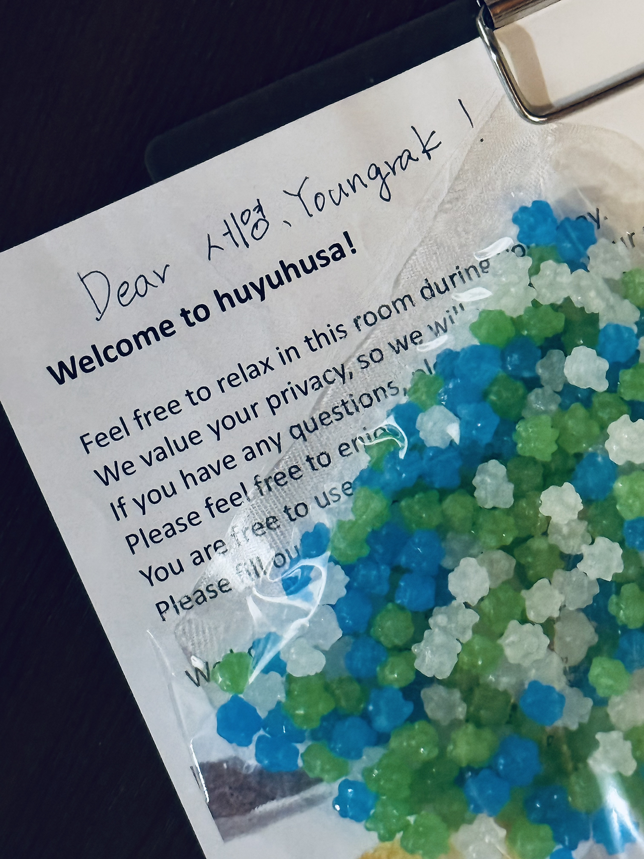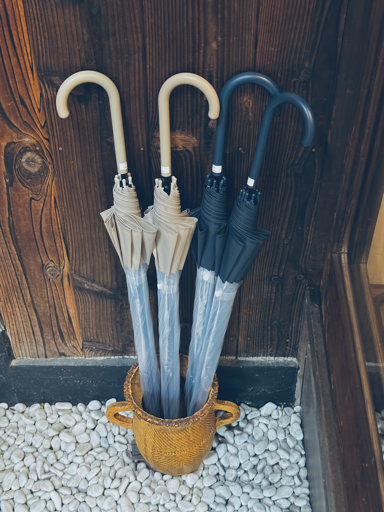 아날로그 번호키로 되어 있어 잠깐 서툴렀지만 바로 도어 오픈! 가파른 계단을 올라 2층을 빼꼼! 카펫이 깔린 바닥에 쿠션이 참 편안했던 매트리스가 게스트 수에 맞춰 준비되어 있고, 핸드메이드 사이드 테이블이 쓸모 있어 보였다. 현관을 들어서면, 하얀 자갈 바닥이 젖은 신발을 말려주고, 세탁기와 세제가 비치되어 있다.