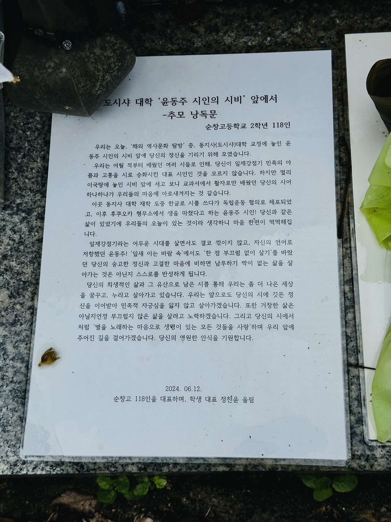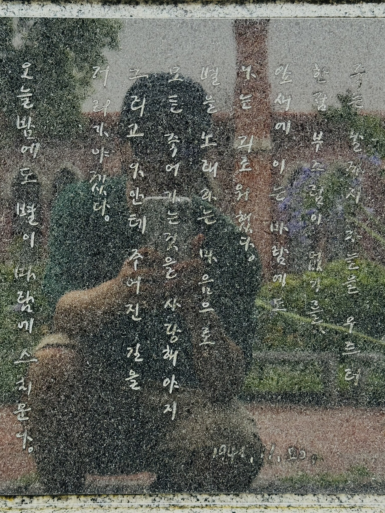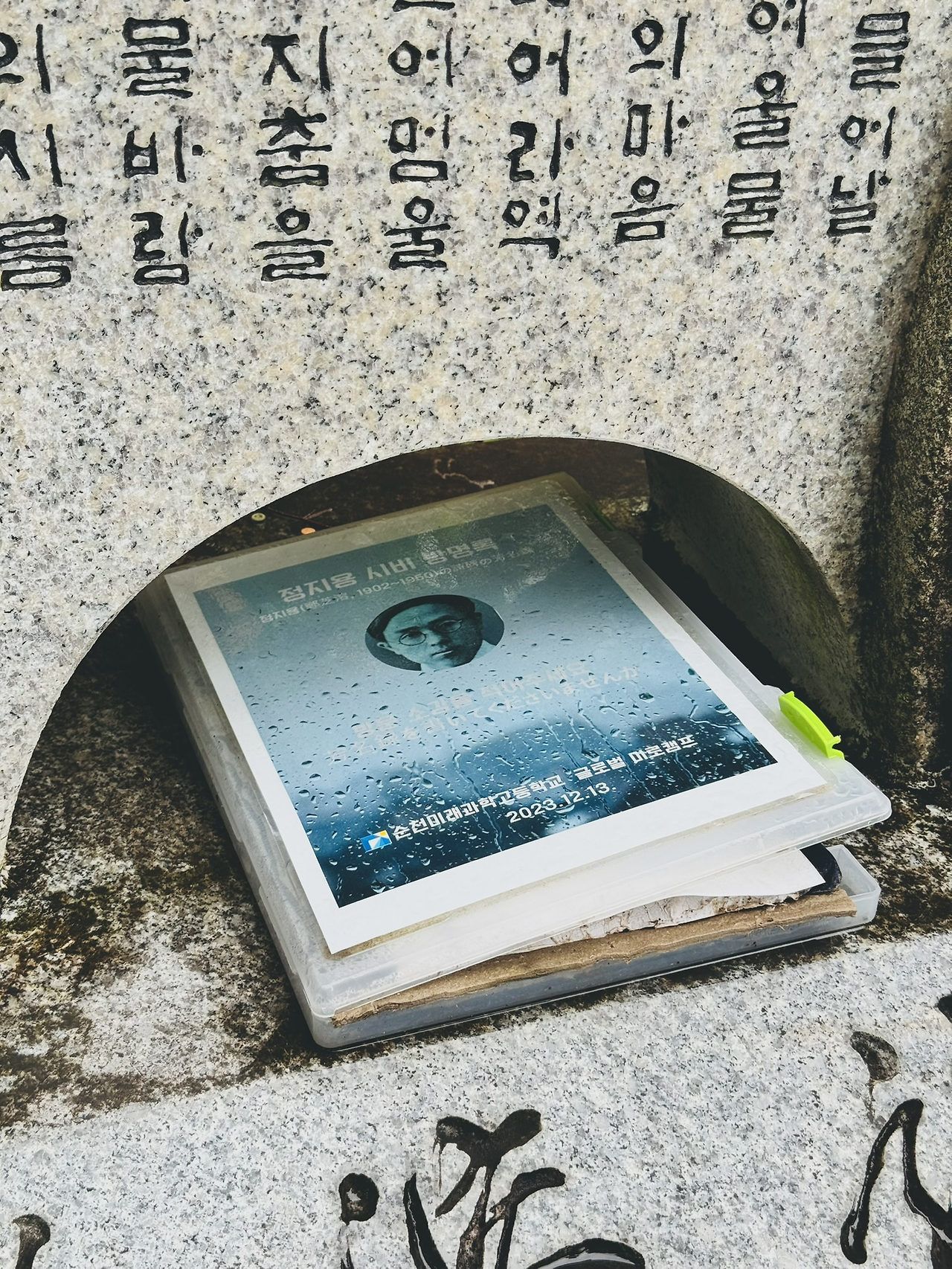 정지용 시비 옆에 나란히 놓인 '윤동주 시비'
