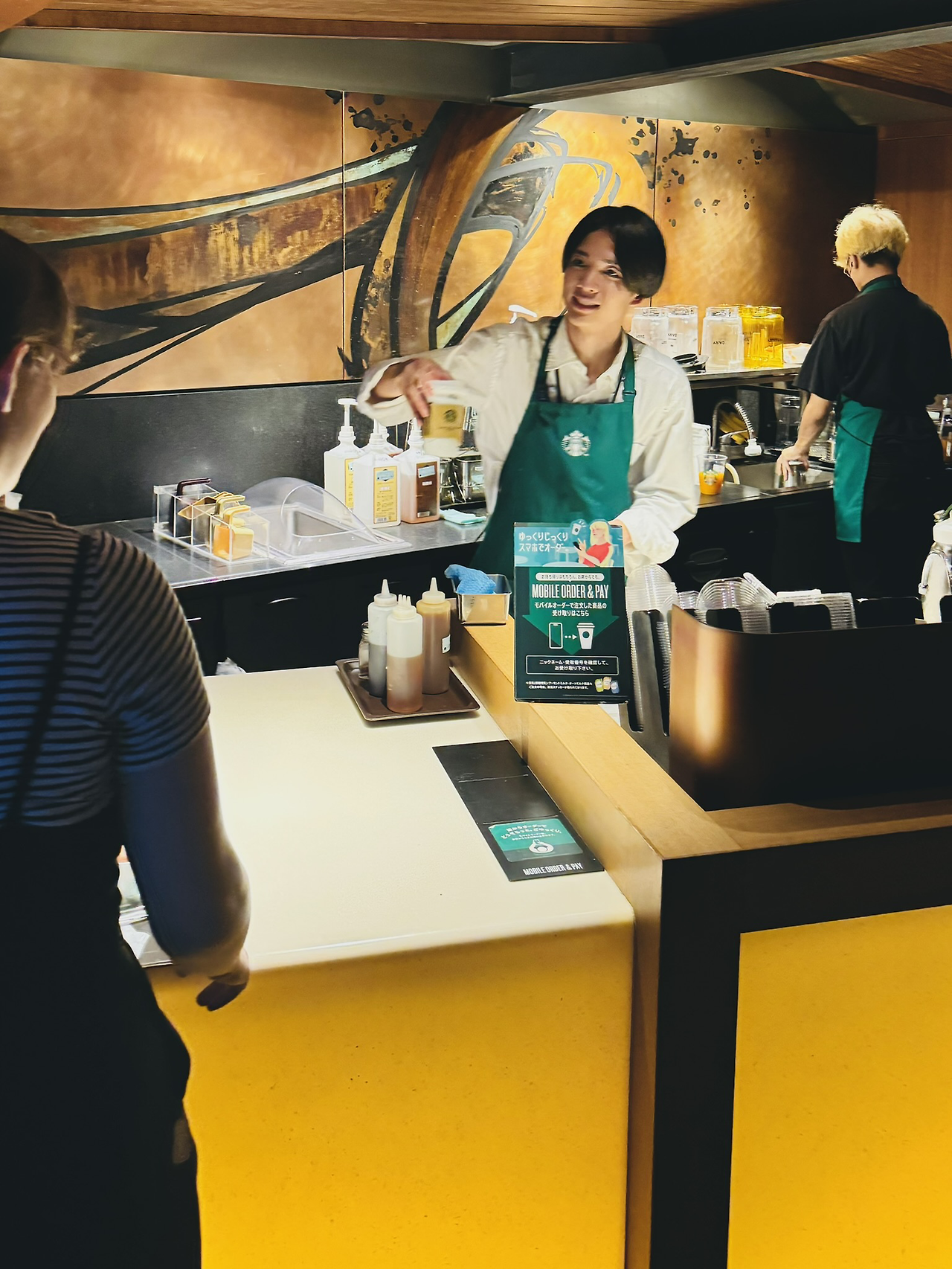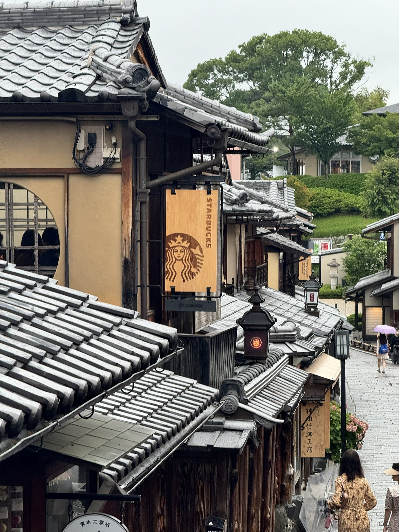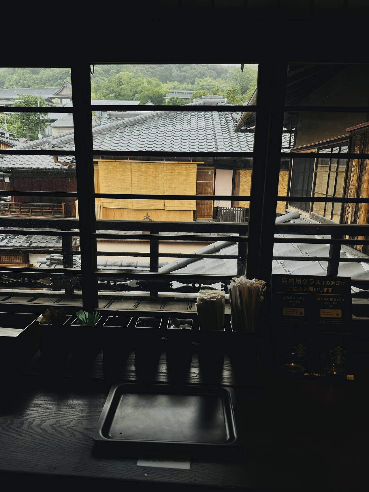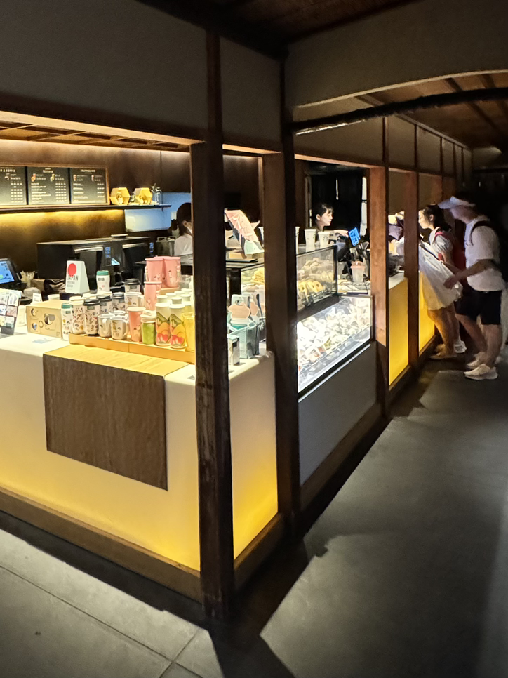 청수사(기요데미데라)를 휘리릭 둘러보고, 올라온 길과 다른 니넨자카 쪽 골목 내리막으로 접어들면 ‘아! 일본이다’ 싶은 스타벅스 간판이 보인다. 실내의 낮은 조도가 공간에 깊이감을 더하고 집중하게 만드는 신비로운 공간이다. 1,000년 전에 스타벅스가 있었다면 이런 모습일 듯~. 빈 자리를 기대 못한 채 2층을 둘러보다가 운 좋게 다다미 마루 자리를 잡아 앉을 수 있었다. 여행지에선 늘 그렇듯 우연히 마주친 발랄한 20대 한국 여행객들과 옆자리에 앉으며 잠시 수다도 떨고, 즐거운 여행 덕담을 주고받으며 헤어졌다.