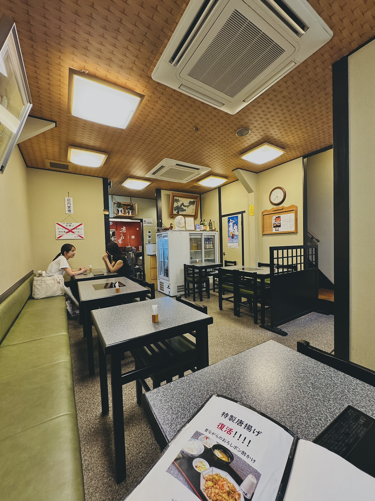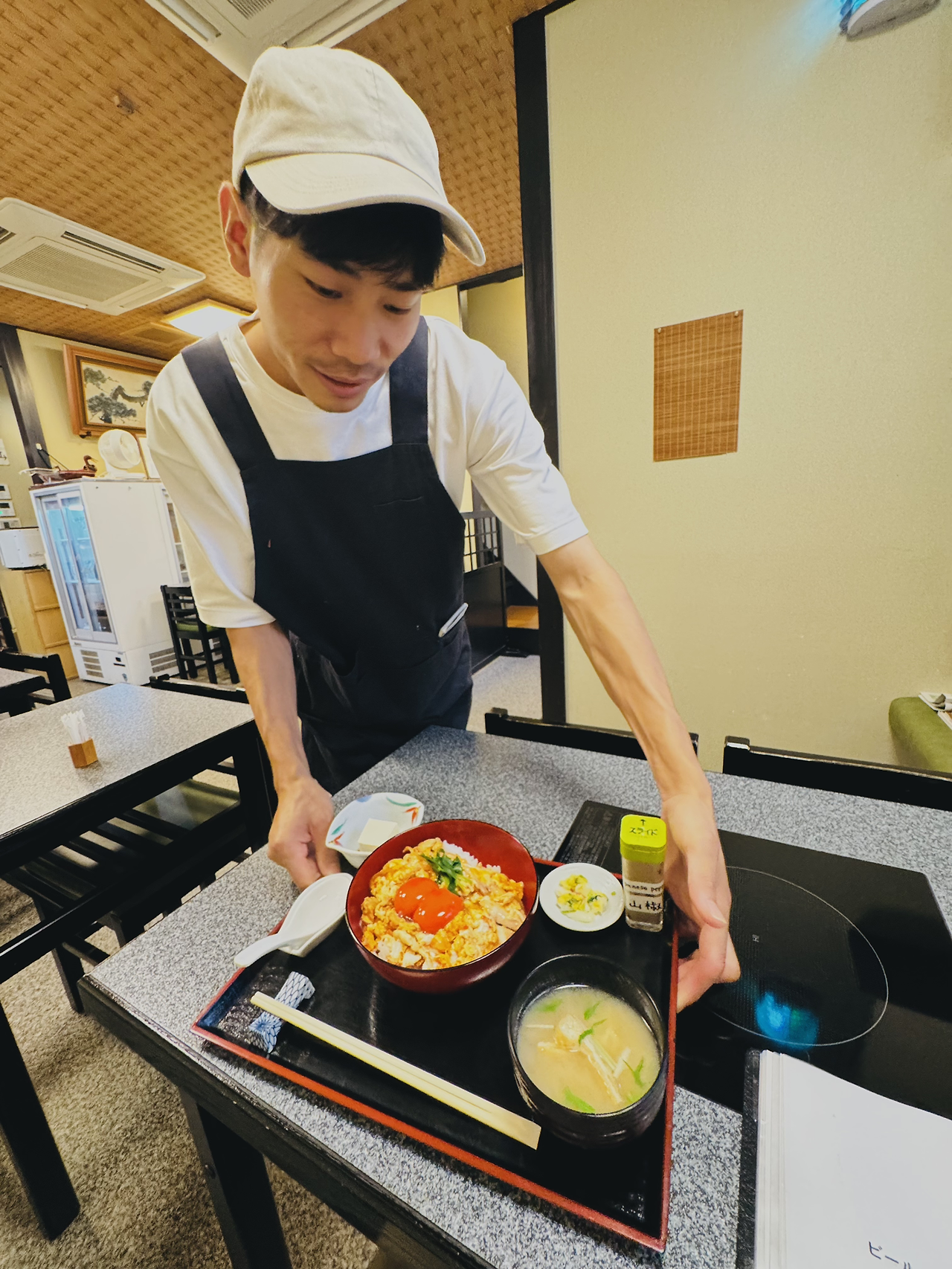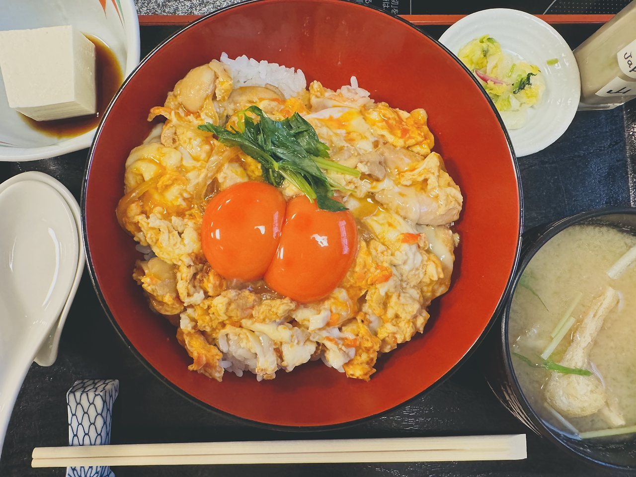 엄마와 아빠, 아이가 함께 먹는 '오야꼬동'이다. 일반 서민들의 대표 메뉴인 듯한데, 교토교엔을 지나 비 오는 거리를 자전거로 어슬렁 다녀온 곳이다. 우연히 구글맵에서 찾아낸 나만의? 교토 맛집이다. 오픈하자마자 드르륵 문을 열고 들어서니 이어서 퇴근길 일본인 여성들이, 동네 노부부로 보이는 분들이 들어온다. 동네 맛집 맞나 보다. 계란덮밥이라고 불러도 좋을 모양새이다. 오래된 노포의 매력이 물씬 느껴지는 식당을 찾은 듯해 괜스레 기분이 좋아졌다.
