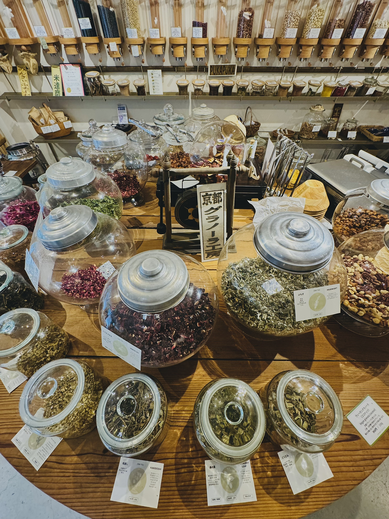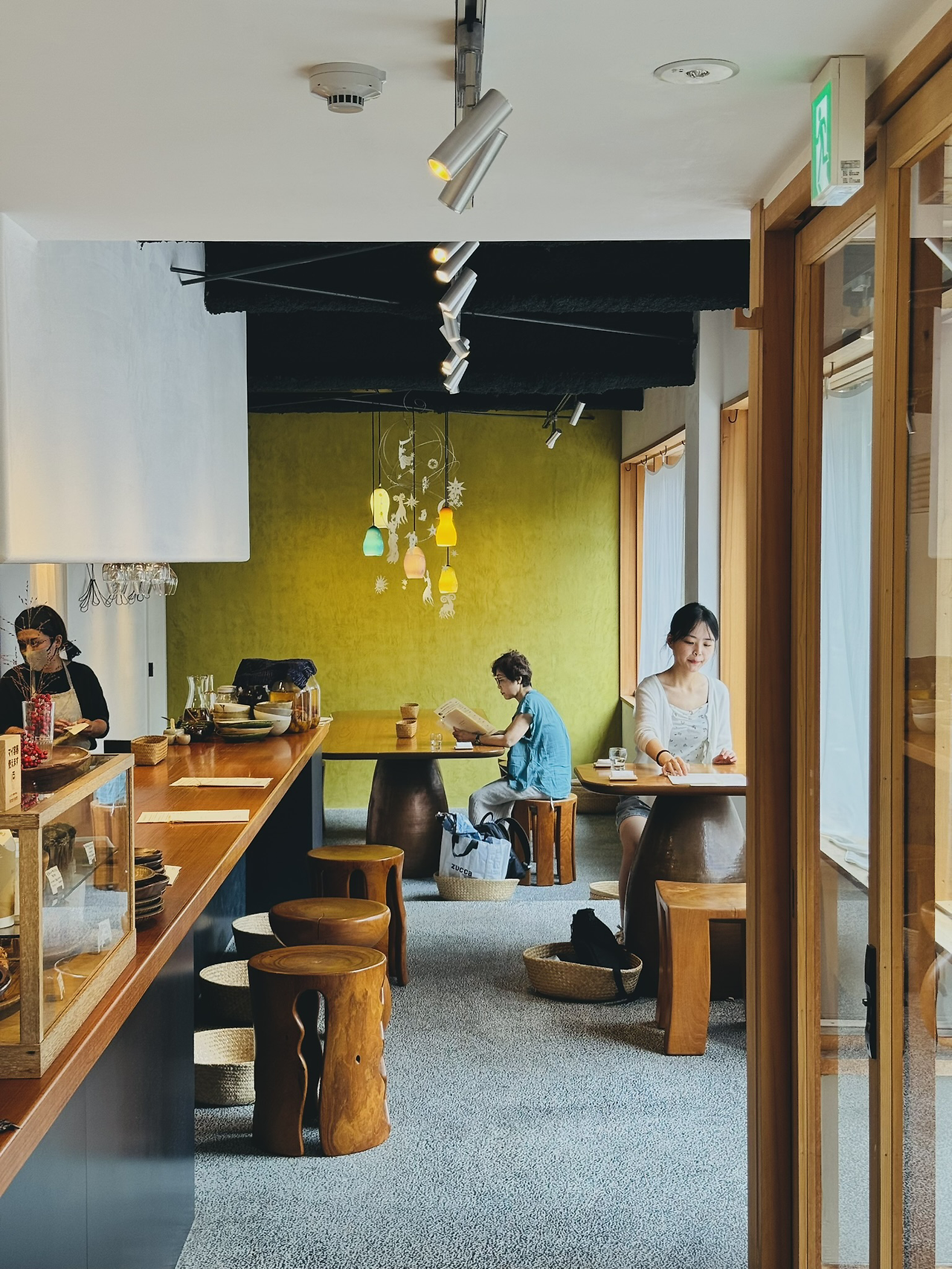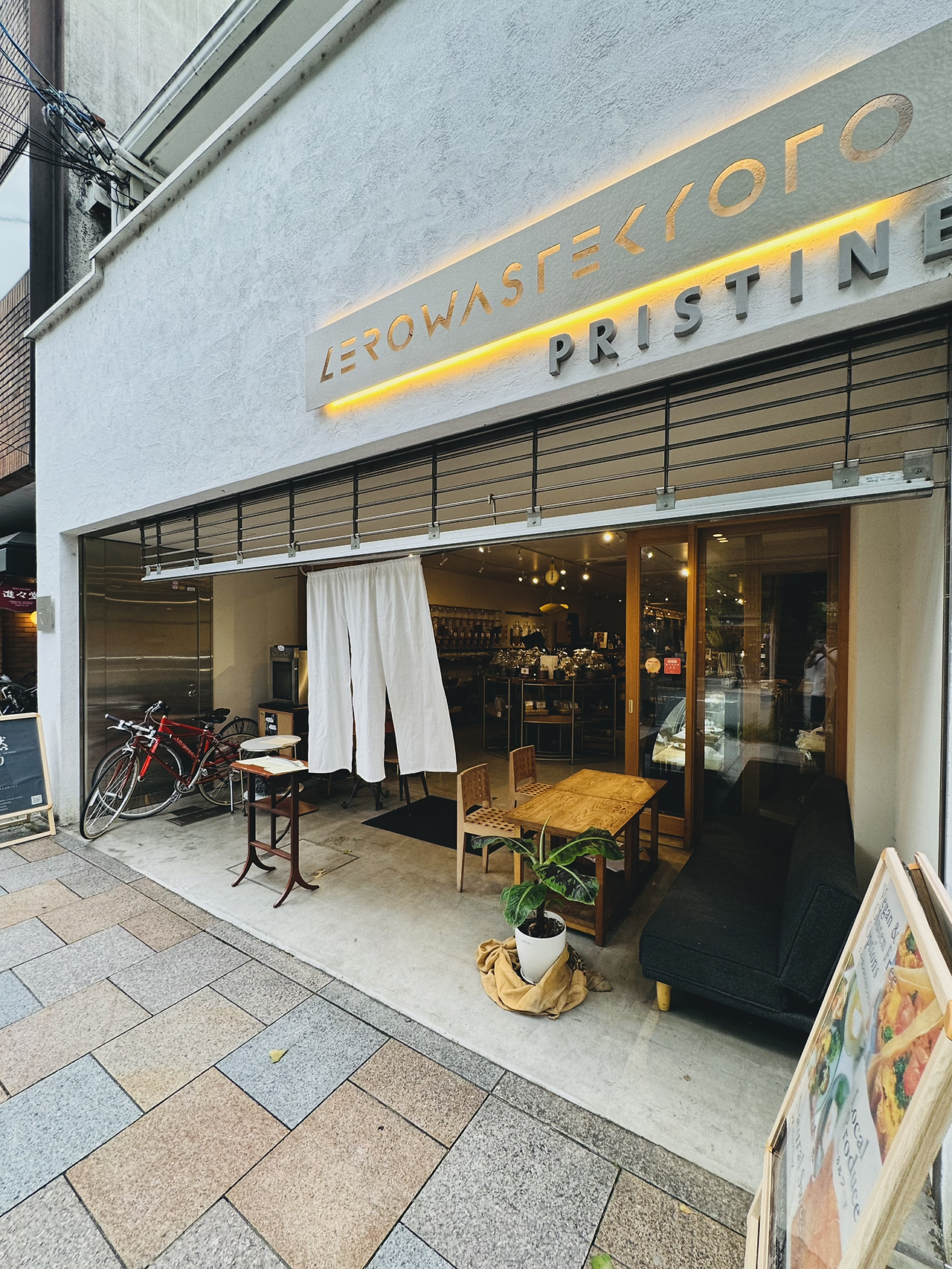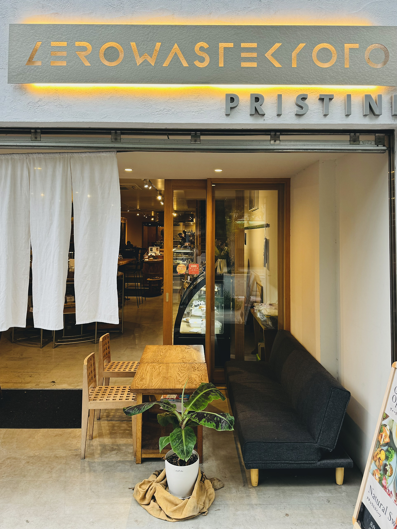 전통의 도시에서 친환경 생태친화 도시로 브랜딩을 강화하고 있는 교토에 참 잘 어울리는 콘셉트의 카페이다. 덜어서 파는 식재료와 로컬 음료(알코올), 건강한 식재료를 참신하게 담아낸 건강 밥상 차림까지 갖췄는데 공간의 분위기는 요즘 사람들이 추구하는 라이프 스타일을 잘 반영한 듯싶다. 앉아서 식사하는 동안 특히 외국인 관광객들의 방문이 많았다. 직원도 외국인 남성 2명에 일본인 여성 1명으로 업장 크기에 비해 많았다. 매출이 잘 나오는 곳인가 보다. 매장 입구를 앉아서 쉬거나 음료를 즐길 수 있도록 소파와 테이블을 배치해서 편안한 분위기로 연출한 부분이 특히 마음에 들었다.