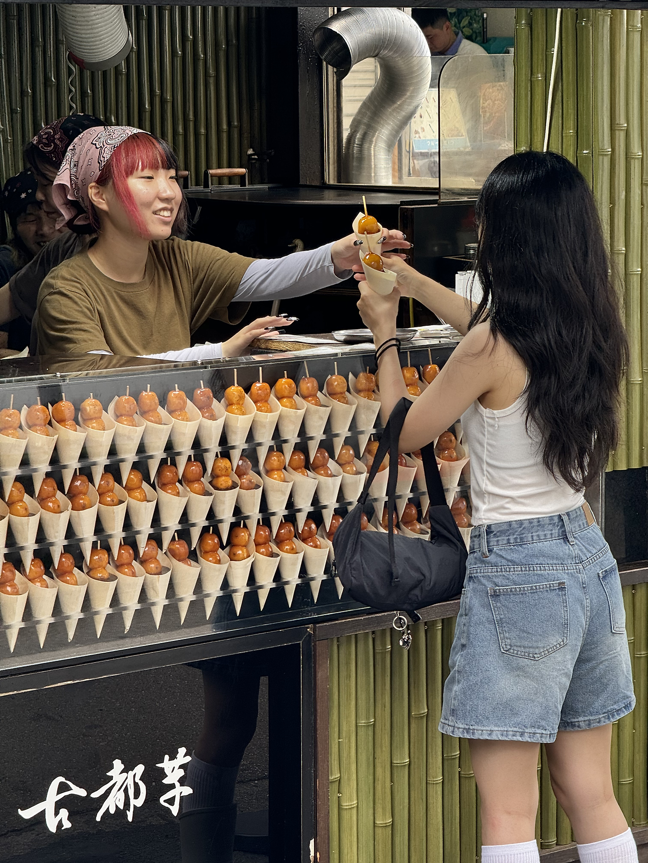 교토 사람들이 사랑하는 가모강을 따라 북쪽으로 오르다 보면, 강이 Y자 모양으로 갈라지는 지점을 '델타'라고 부르더라. 이곳 인근 동네 시장에 줄을 서는 일본 떡집이 있다. 여러 가지 떡들이 있지만 큼지막한 콩이 알알이 박혀 있는 하얀 떡이 인기가 제일 많은데, 우리나라의 시루떡의 동그란 버전 정도로 생각하면 맞을 듯 싶다. 일본 사람들은 이곳에서 떡을 사서 가모 강변으로 나가 떡을 먹으면서 담소를 즐긴다고 한다. 그래서 우리도 그랬다.