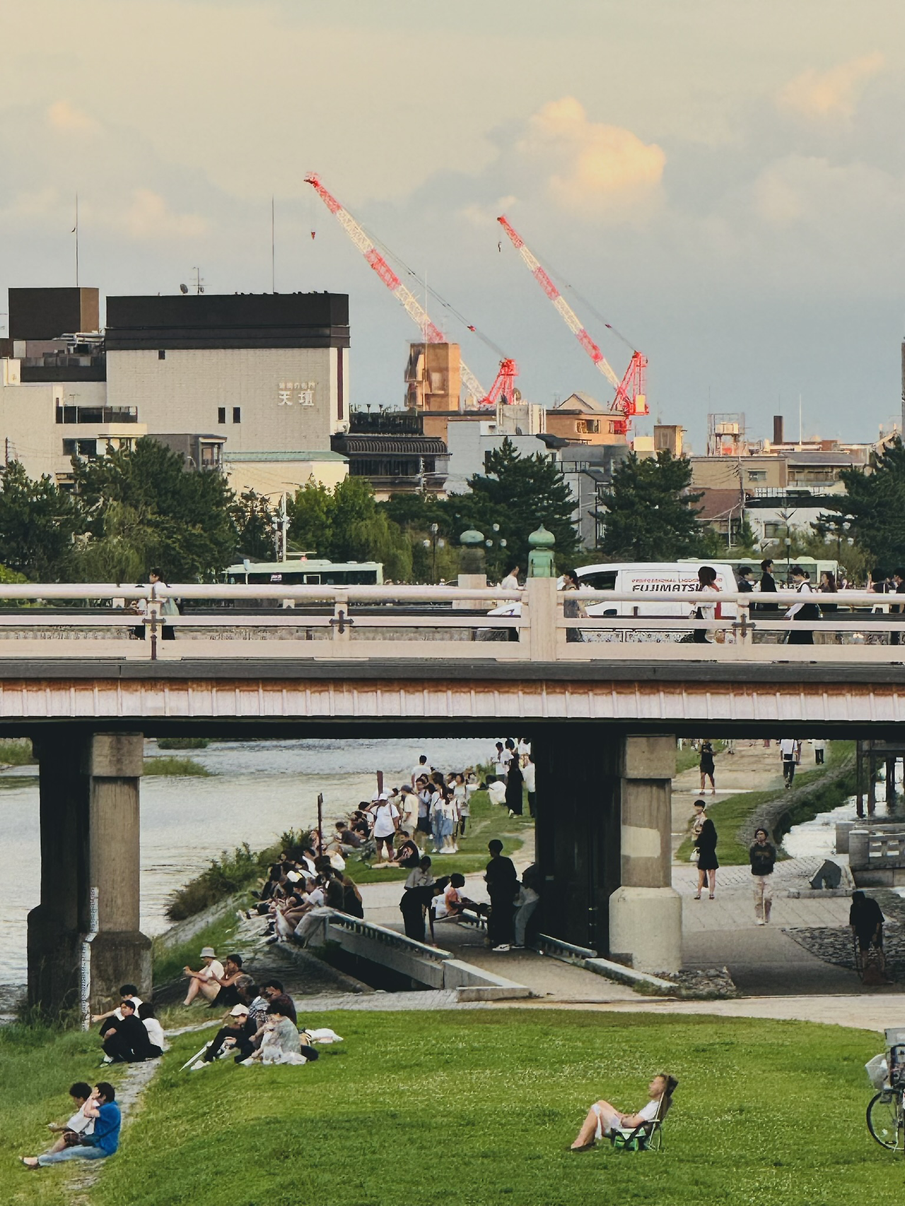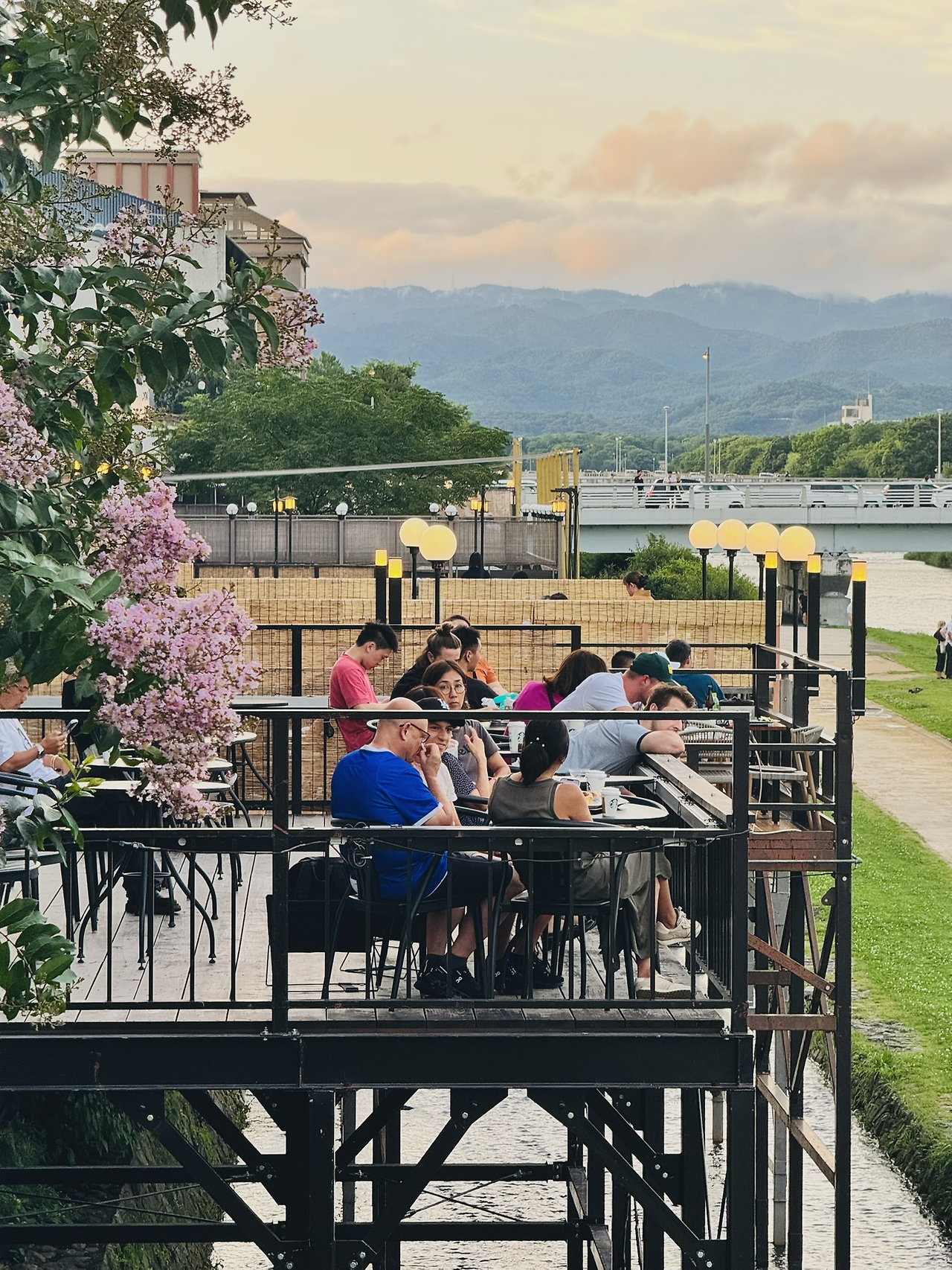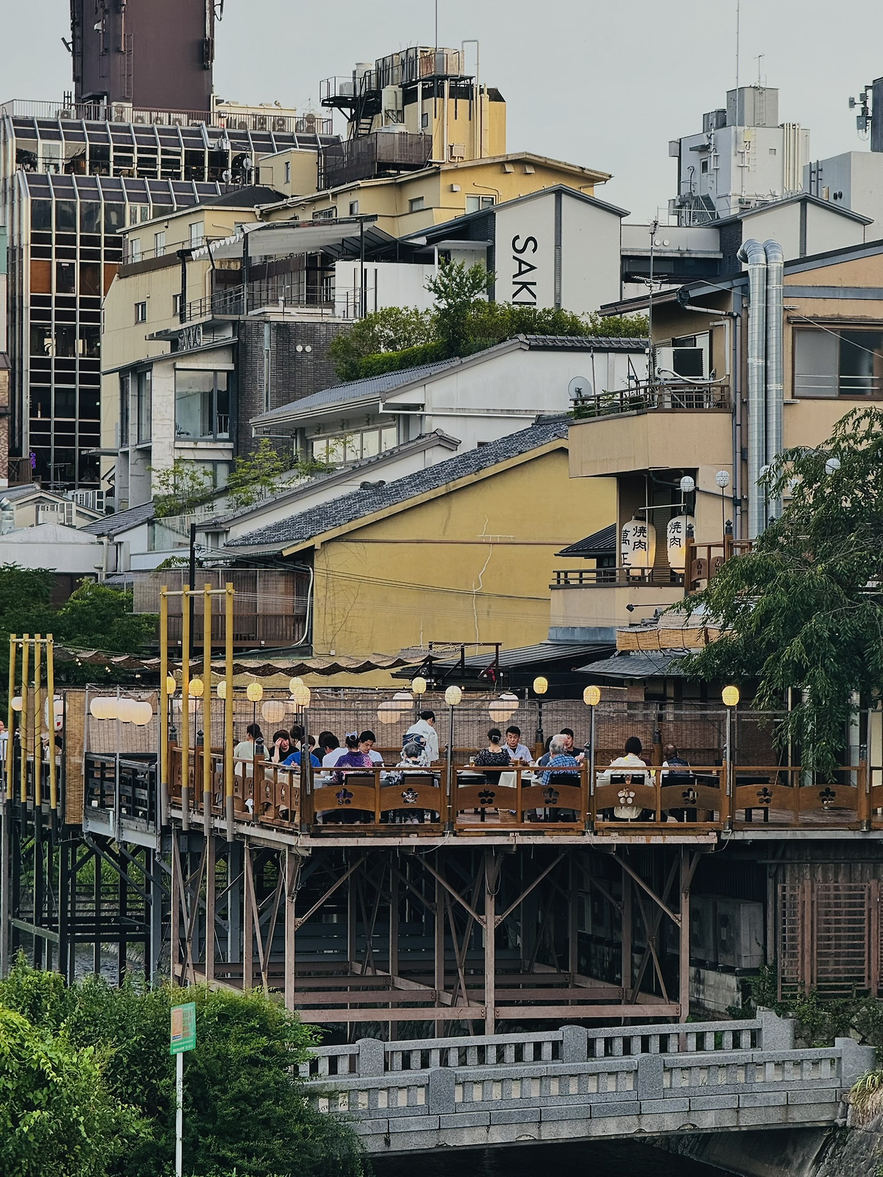 저녁이면 가모 강변 식당가엔 사람들로 북적인다