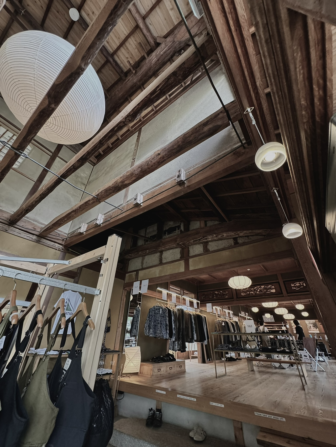 일본의 명품 아웃도어 브랜드 ‘스노우피크’가 F&B형태의 쇼룸 형태로 선보이는 장소이다. 일본 전통 등에 프린트된 스노우피크 로고가 인상적이다. 오래된 일본 가옥을 리모델링해서 쇼룸으로 들어서려면 신발을 벗고 마루에 올라야 한다. 이때가 지친 발이 잠시 숨을 쉬는 시간도 되어 준다. 발바닥에 닿는 오래된 나무 마루의 느낌이 정겹다.