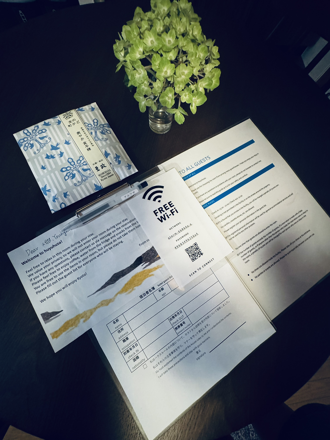 이번 교토 여행에서 ‘에어비앤비’는 정말 멋진 선택 중 하나였다. 교토교엔(교토의 국민공원으로 불린다) 남문 바로 길 건너에 있어서 아침마다 교토교엔을 산책하고 달리기에 참 좋은 위치였다. 2~3명 정도가 머물기에 적당한 100년 넘은 3층 일본 고택(3층은 소방안전법?으로 사용을 못하도록 리모델링되어 있었다)으로, 호스트와의 소통은 따뜻하고 부드러웠으며, 사려 깊은 환대가 느껴졌던 숙소로 꼭 추천하고 싶다. 위치는 관광객들이 많이 찾는 시조도리와 걸어서 20분이면 충분했고, 집 앞에 비치되어 있는 숙소 자전거는 비 오는 교토 이곳저곳을 어슬렁 누비기에 요긴했다.