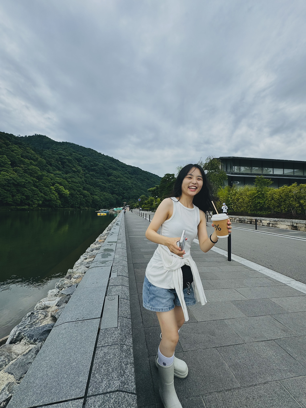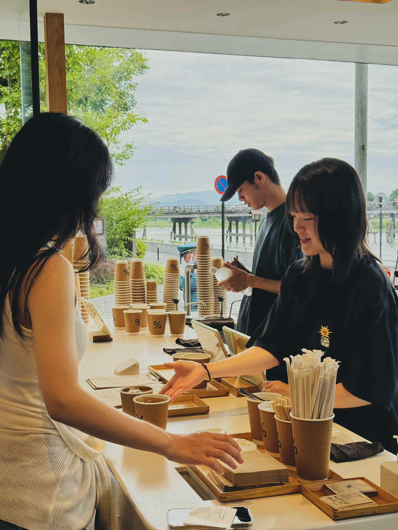 교토 사람들의 주말 나들이 명소이자, 왕족들의 별장이 있었던 곳. 물과 산이 좋아 봄 벚꽃과 가을 단풍이 아름다운 아라시야마를 비 오는 여름에 찾았다. % 아라비카 커피는 강물을 배경으로 시원한 강바람을 맞으니 커피맛이 더 훌륭해진다.