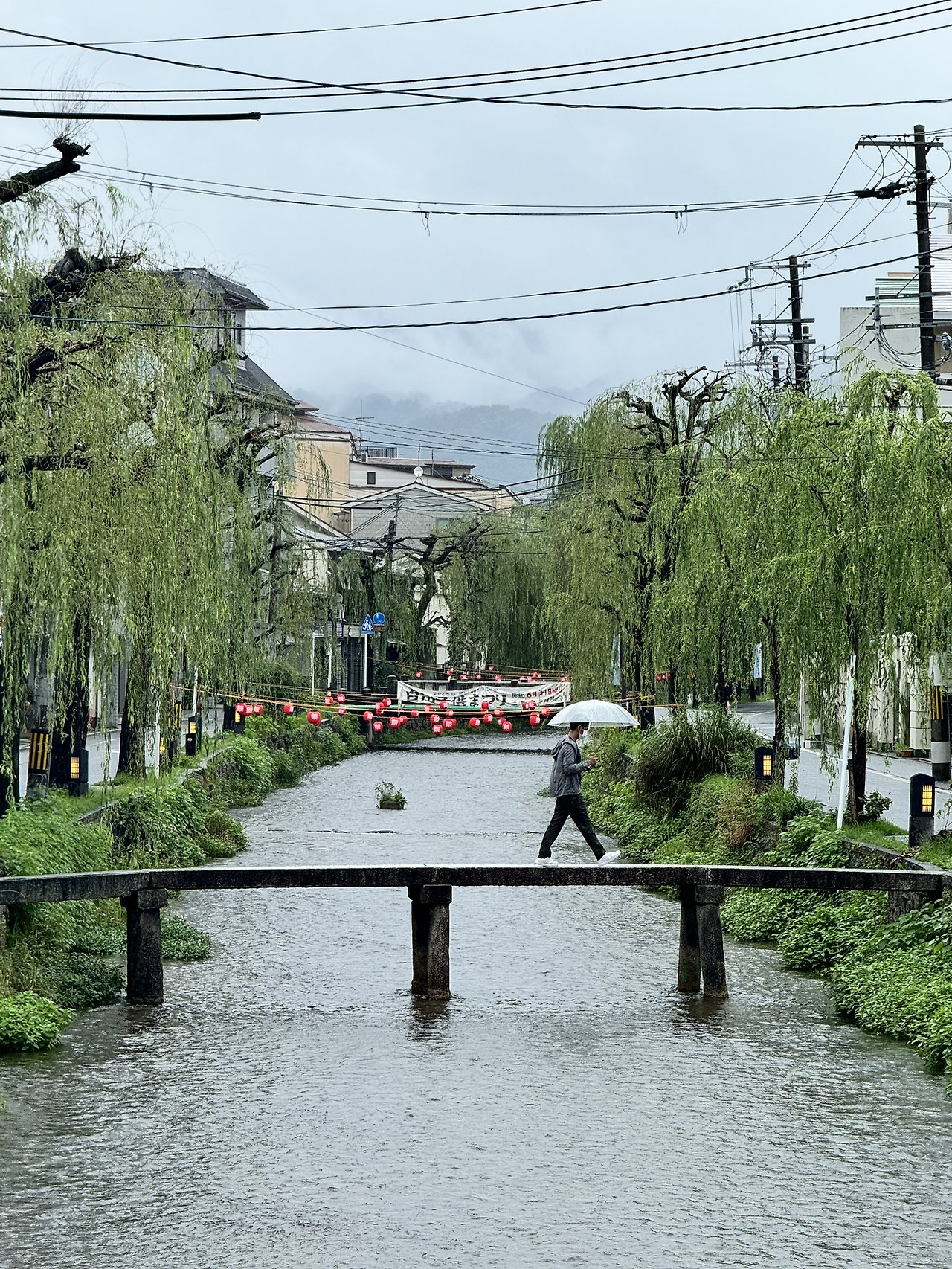 숨은 명소 '행자교'. 그냥 작고 좁은 다리인데 왜 유명하지? 여럿이 나란히 건너면 이쁘겠다.비 오는 교토를 뛸까 어쩔까 고민하다, 그냥 자전거로 교토의 골목을 누벼보자고 나섰다.