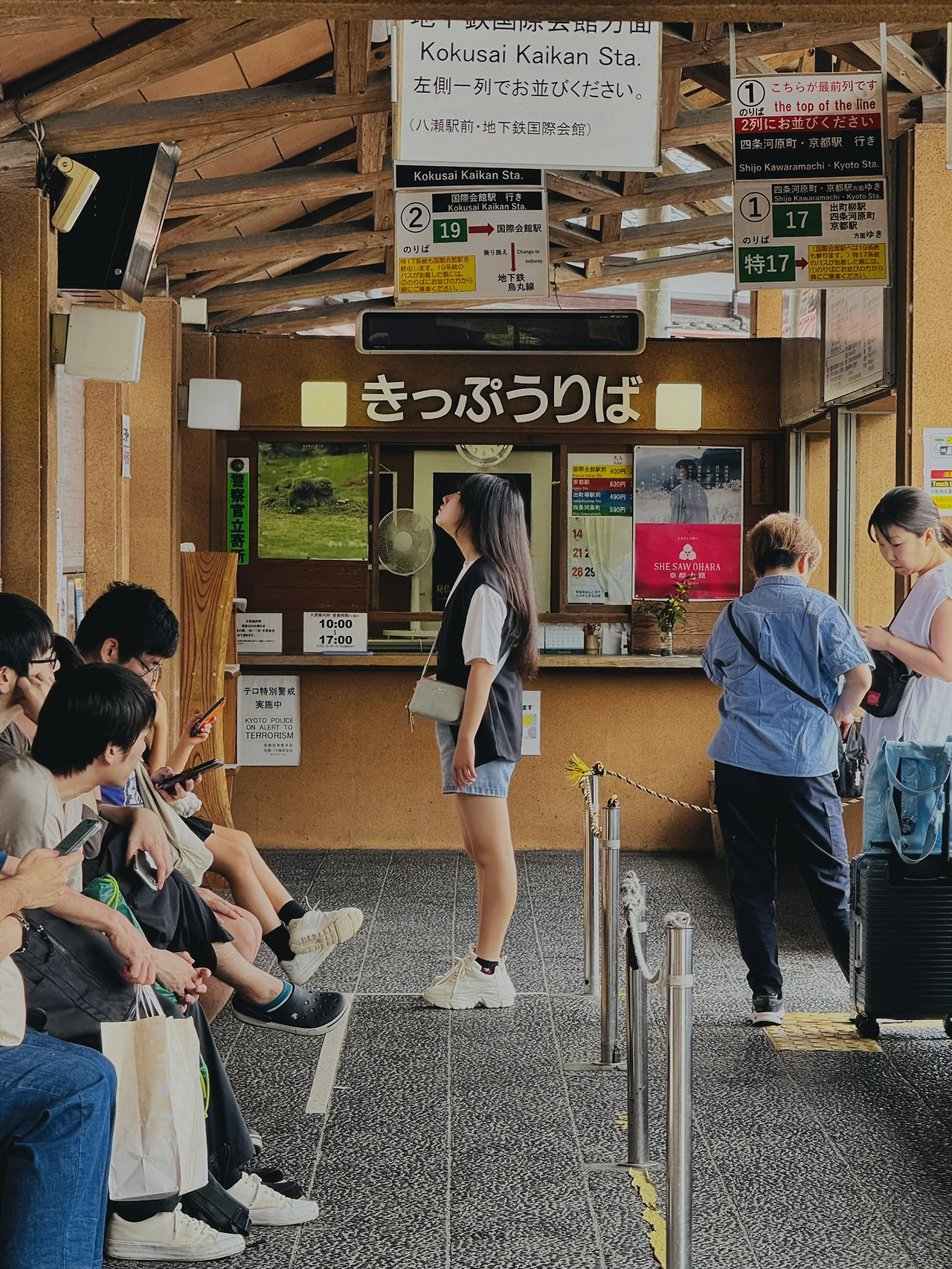 교토교엔 인근 버스 정류장에서