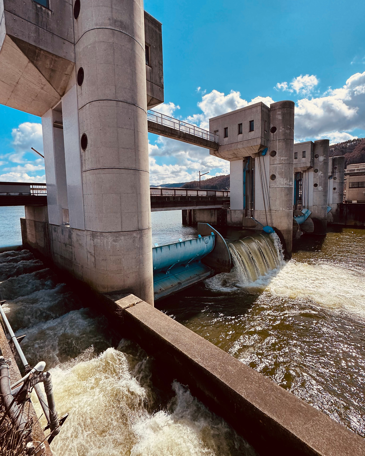 미나토, 요리, 후시미 교장이 지나는 스와호에 걸리는 수문교이다. 영화 <괴물>에서 미나토와 요리가 지나고, 교장선생님이 요리를 만나고, 웅장한 물소리가 귀를 압도하는 장면들에서 시시때때로 다른 느낌으로 다가오던 장소이다.