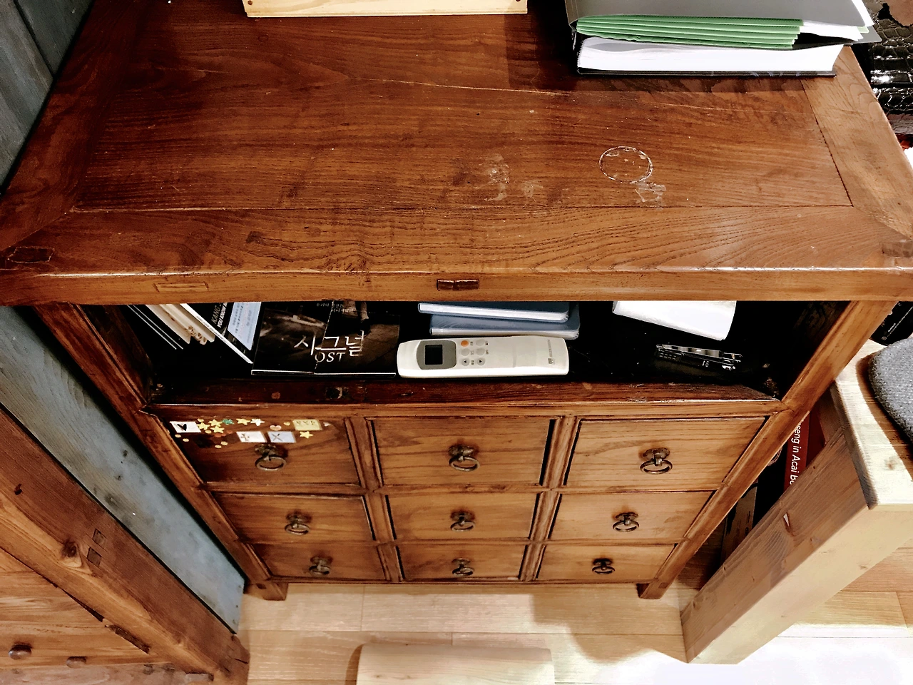 어느 시골 한약방에서 감초나 당귀 같은 한약재를 담아 보관하던 약장이