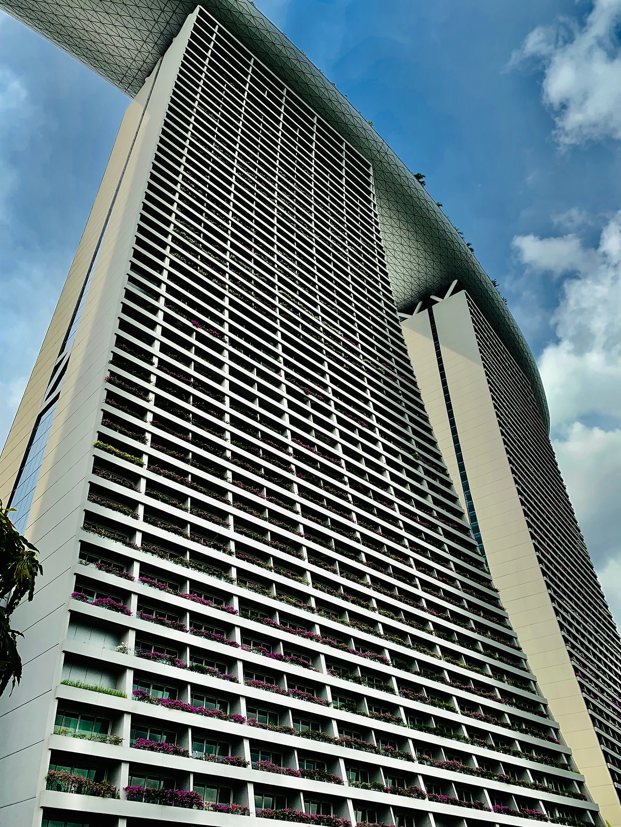 '가든스 바이 더 베이' Gardens By The Bay에 들어가려면, '마리나 베이 샌즈 호텔' Marina Bay Sands Hotel로 이어지는 구름다리를 지나, 호텔 안을 통과해야 비로소 그곳에 다다를 수 있다. '52도의 기적'이라고도 불리며 싱가포르에서 수여하는 많은 상을 받은 이 건축물은 우리나라 쌍용건설이 시공했다.