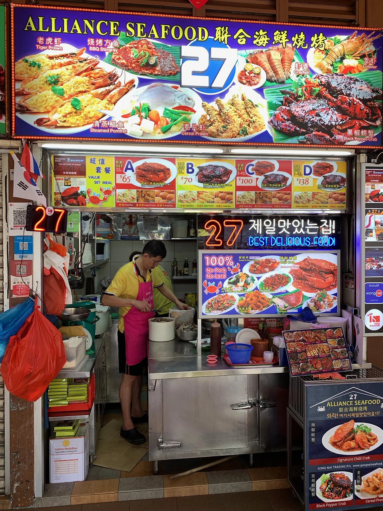 '짠내투어'에 소개되면서 유명해진 27번 칠리크랩 가게는 우리가 앉아 있는 짧은 시간 동안에도 여러 한국인 관광객을 맞이하고 있었다. 한국어로 '제일 맛있는 집' '의리' 등등의 한글이 오히려 낯설었던 곳, 호커센터.
