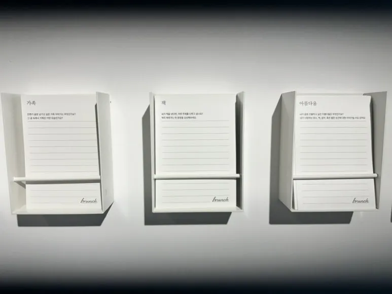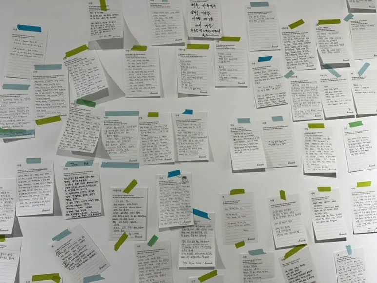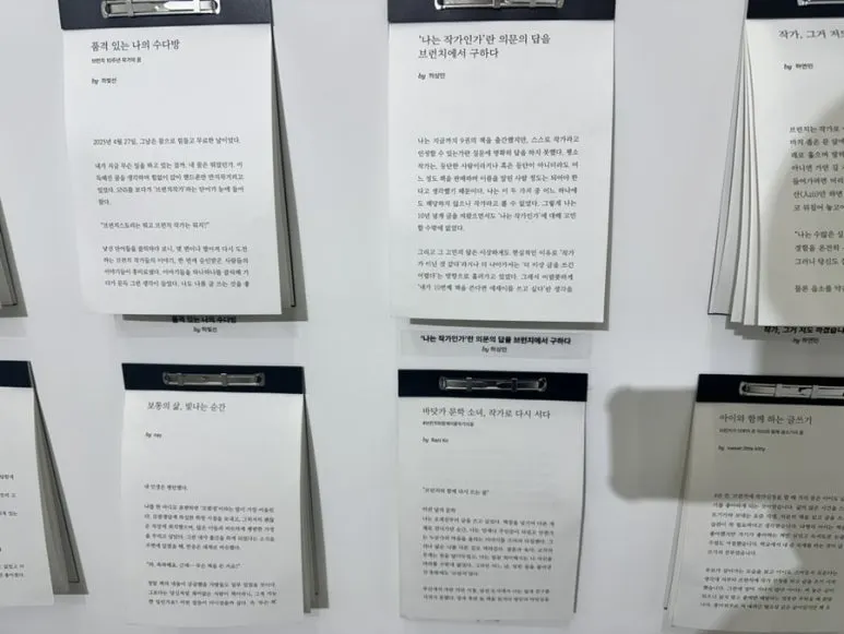 자리에 앉아 글을 쓰고, 한쪽 벽면에 이렇게 붙여 남길 수도 있다. 찬찬히 다른 사람들의 글을 읽다 보면 새로운 영감도 받는다.