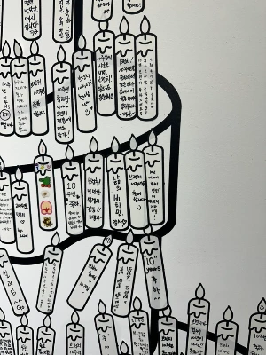 촛불 스티커에 축하문구를 적어 케이크 모양 벽면에 붙일 수 있었는데, 나도 하나 붙였다. :)