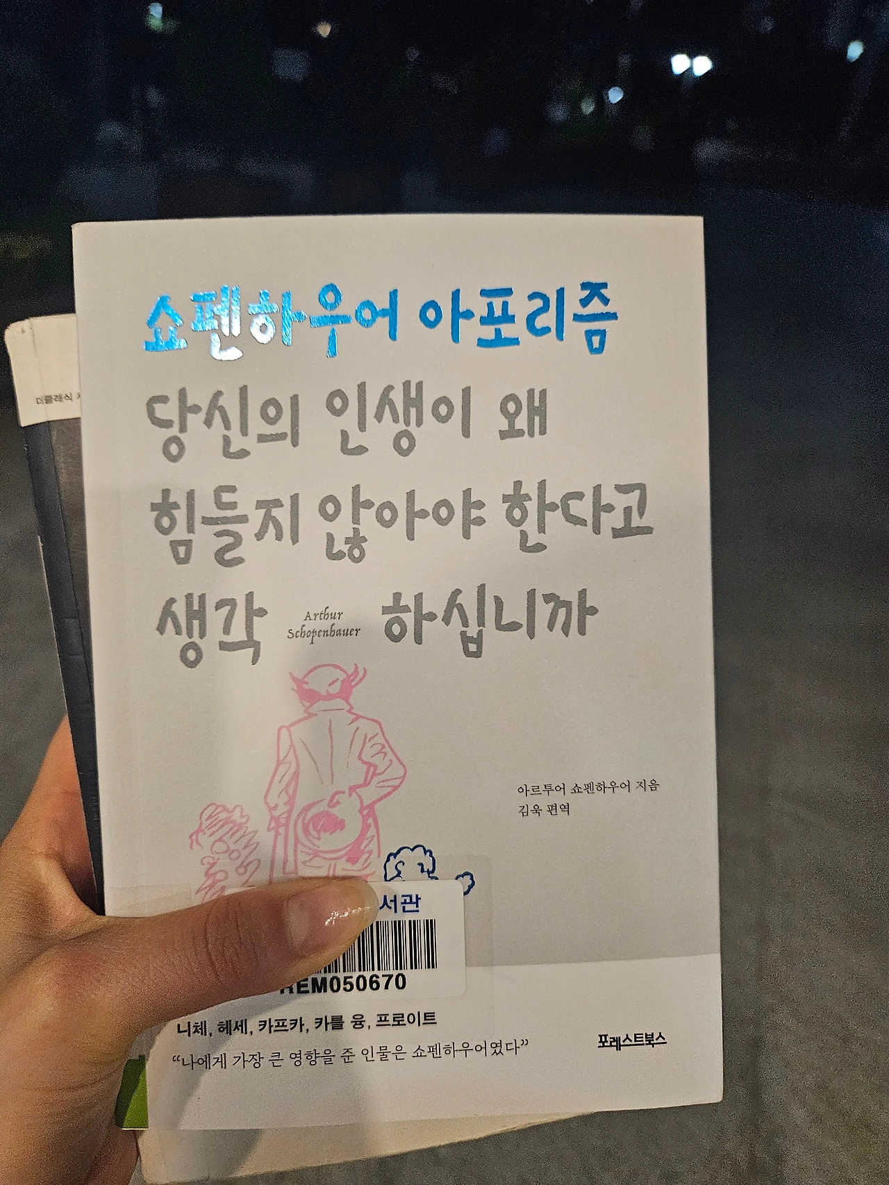 쇼펜하우어 철학이 염세주의에 바탕이 되어있다는 점은 차치하더라도, 150년 전에 남긴 글들이 지금에도 적용된다는 점이 놀랍다. 철학이란 건 수학처럼 인생의 어떤 공식과 답이 되는 건가. 동시에 현대에 어떤 철학가들이 어떤 철학을 보여주고 있는지 궁금해진다.