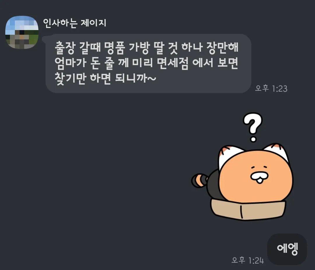 "나 결혼식 갈 때 그냥 간다니까 가방 빌려준대."