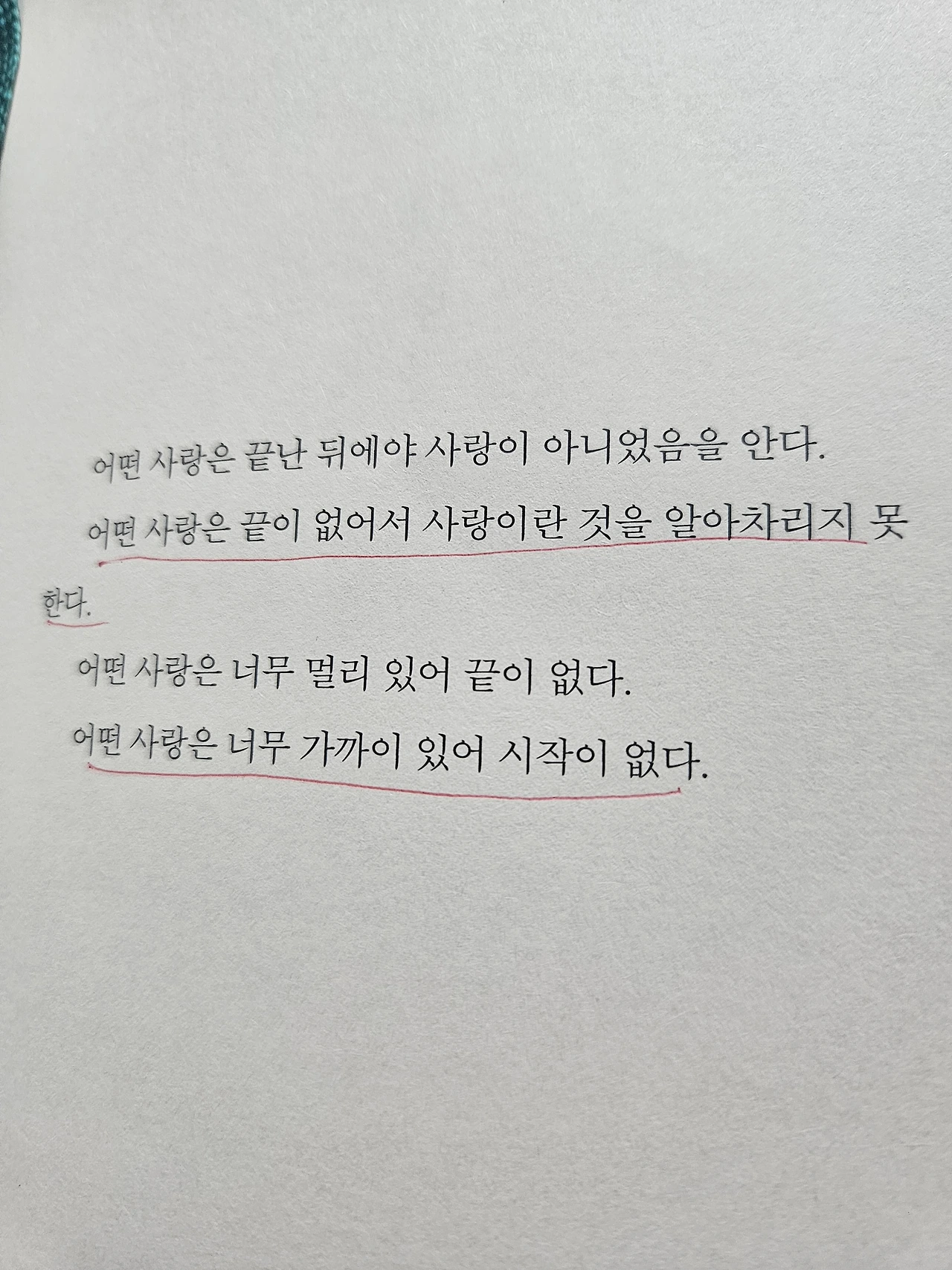 별도로 명언...을 넣은 페이지가 있었는데 몇 번씩 반복해서 읽다 보니 이해가 됐다. 내 지난 감정과 혹은 지금 겪는 감정이 겹쳐졌다. 인스타그램에서 작가님이 해당 페이지를 직접 낭독하는 영상을 보기도 했다.