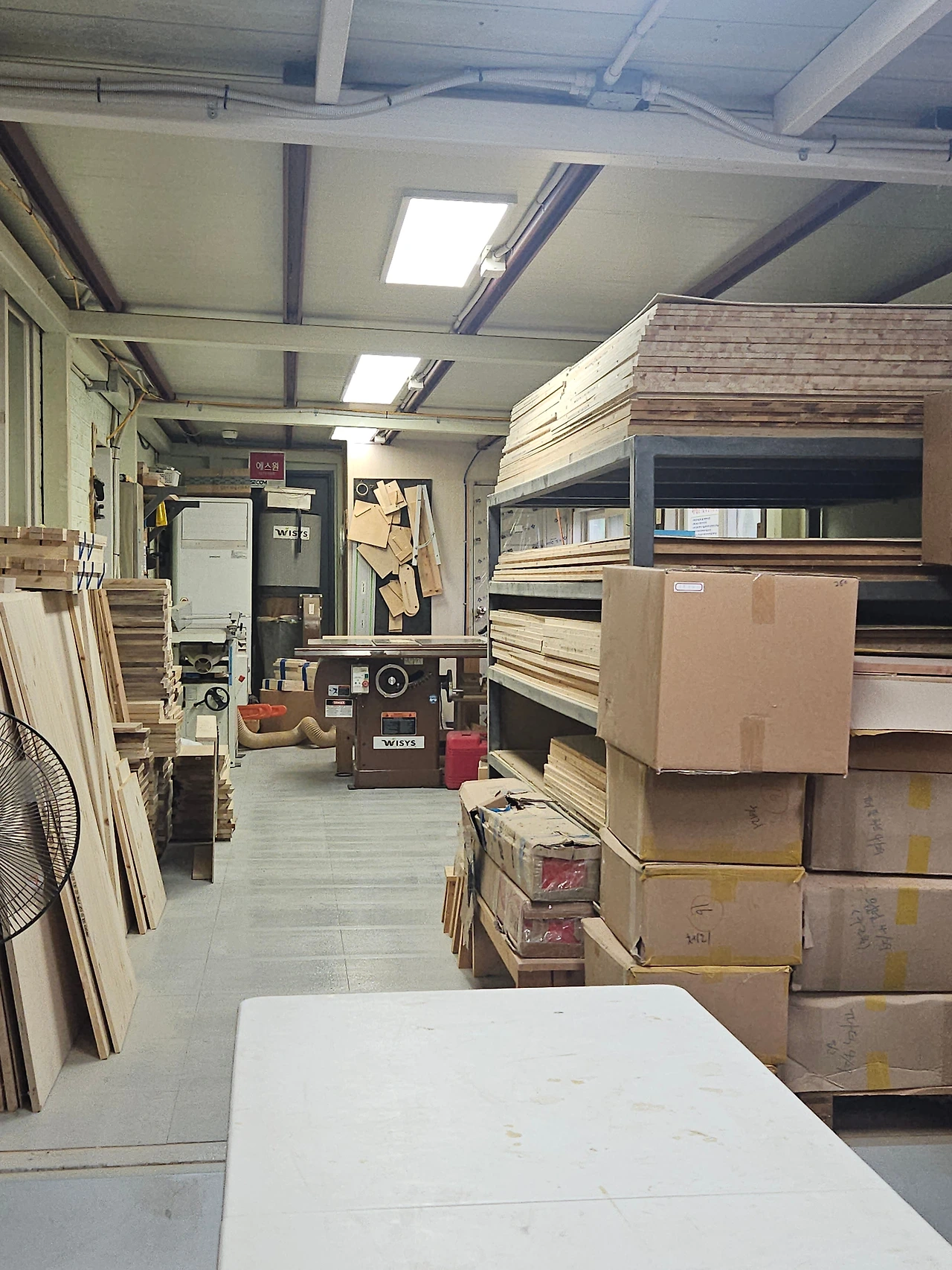 나무라는 소재와 다르게 작업장은 기계가 돌아가는 소리가 매우 크다. 차분하고 편안한 느낌을 주는 나무가 사람들 앞에 보이기까지 이런 번잡한 과정을 거친다는 게 아이러니다.