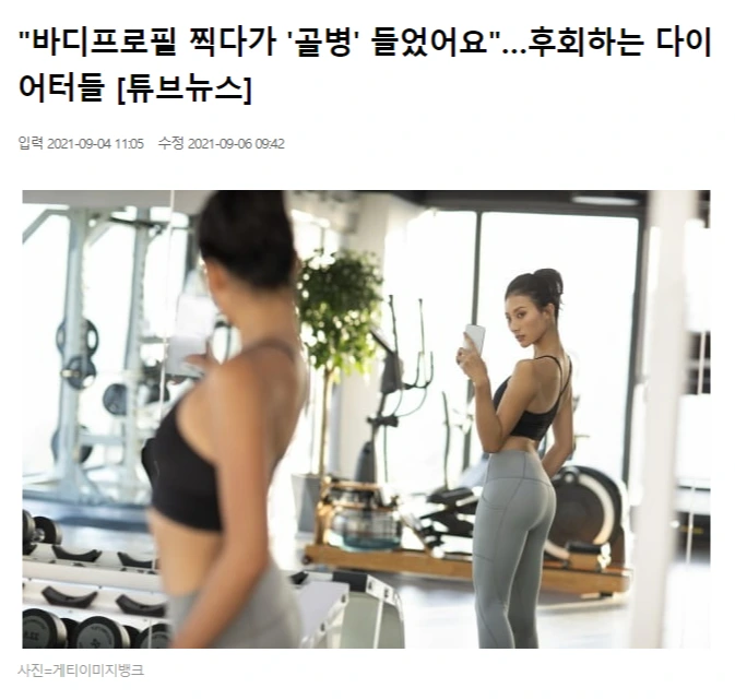김예랑(2021, 09월 04일). "바디프로필 찍다가 '골병' 들었어요"…후회하는 다이어터들 [튜브뉴스]. 한국경제. https://n.news.naver.com/article/015/0004600367?cds=news_my