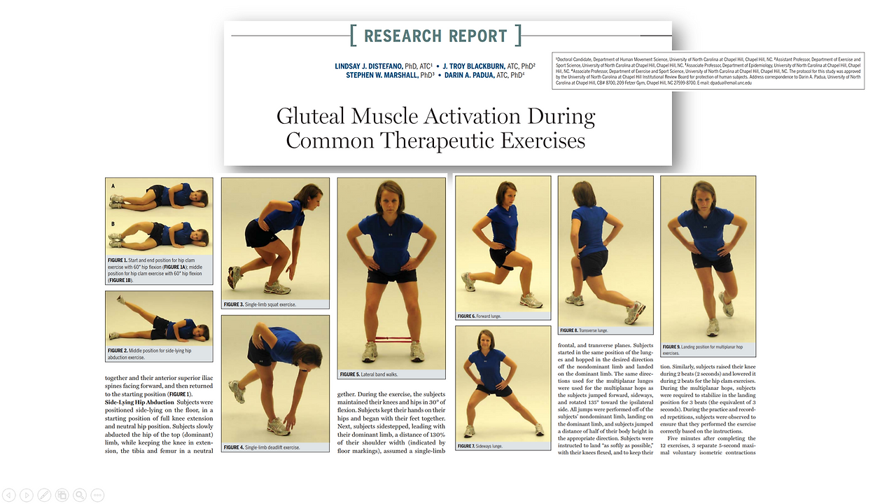 Distefano et al. (2009). Gluteal muscle activation during common therapeutic exercises. journal of orthopaedic & sports physical therapy, 39(7), 532-540.