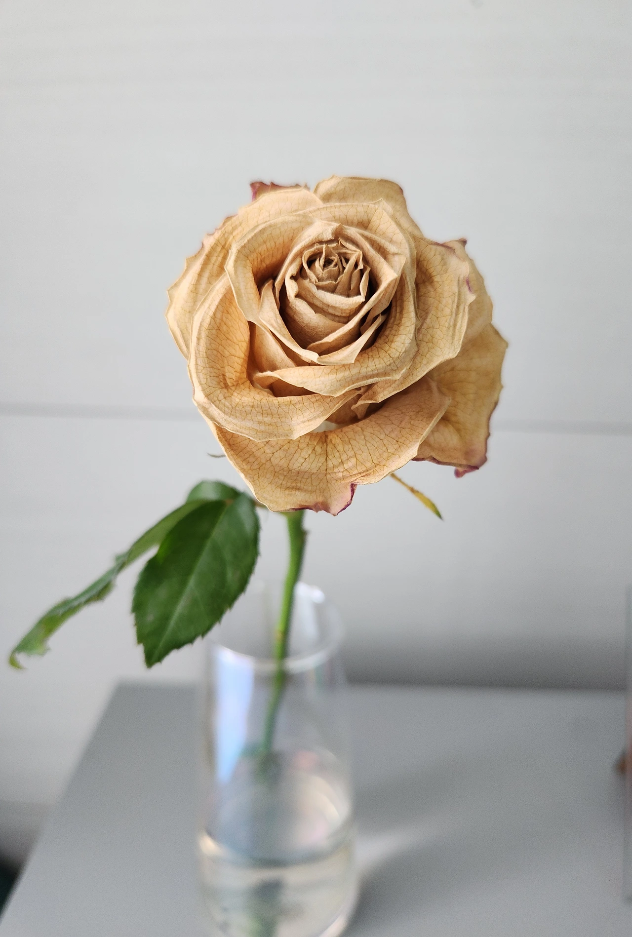 그래서일까. 지금도 거실 한켠엔, 말없이 마르며 시간을 품고 있는 장미 한 송이가 있다.