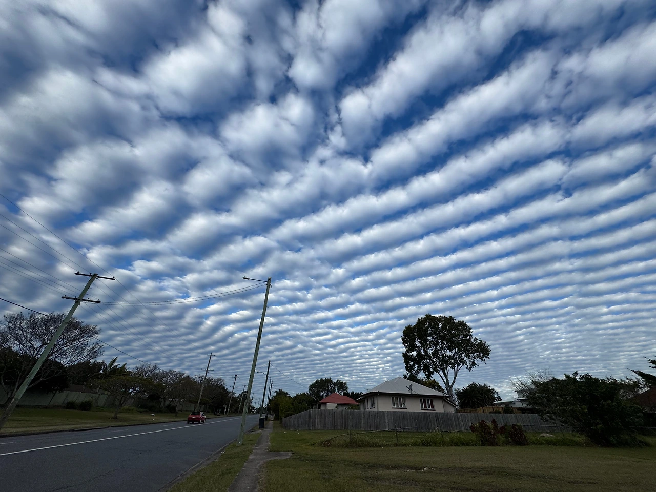 구름이 마치 거대한 손으로 정갈히 빗어 놓은 것처럼 하늘위로 빽빽하게 줄지어 떠 있었다.