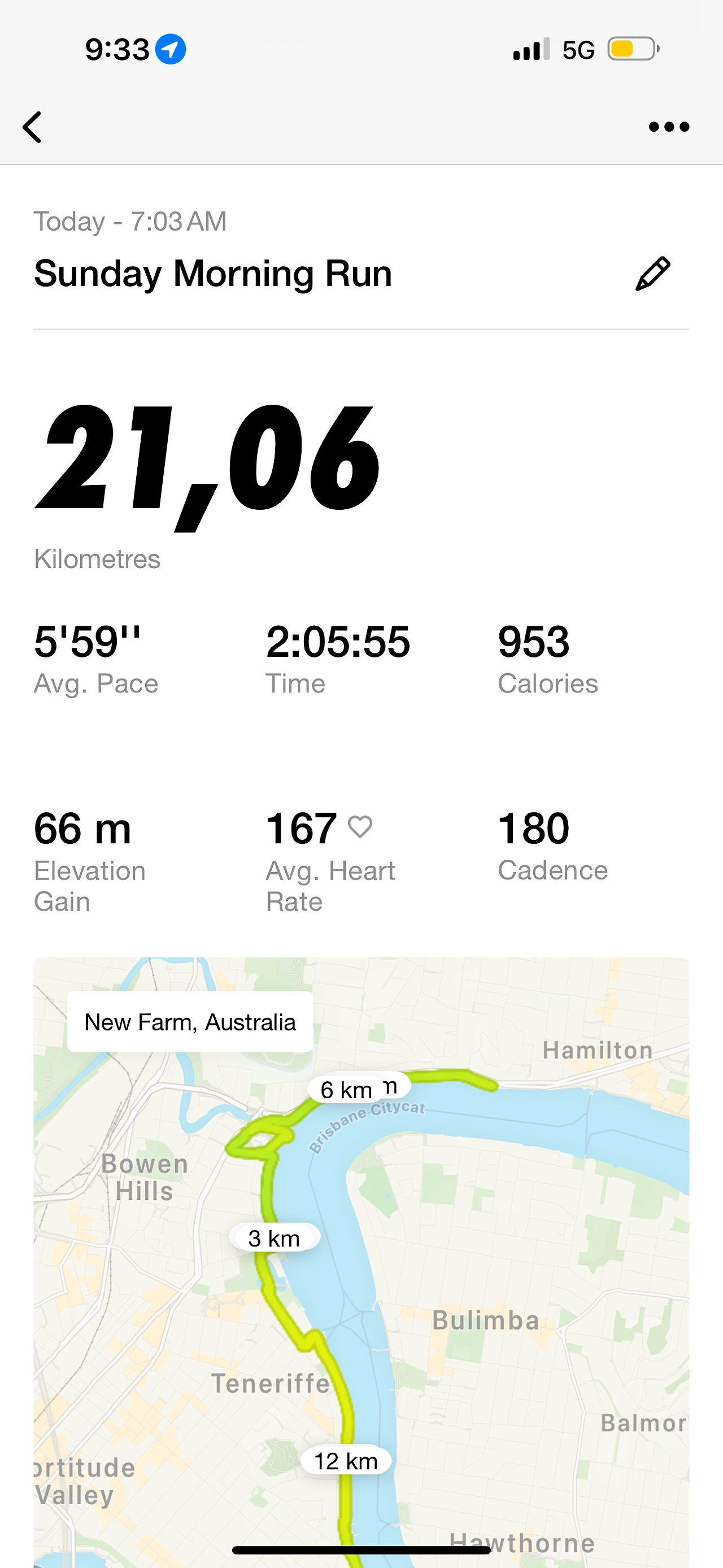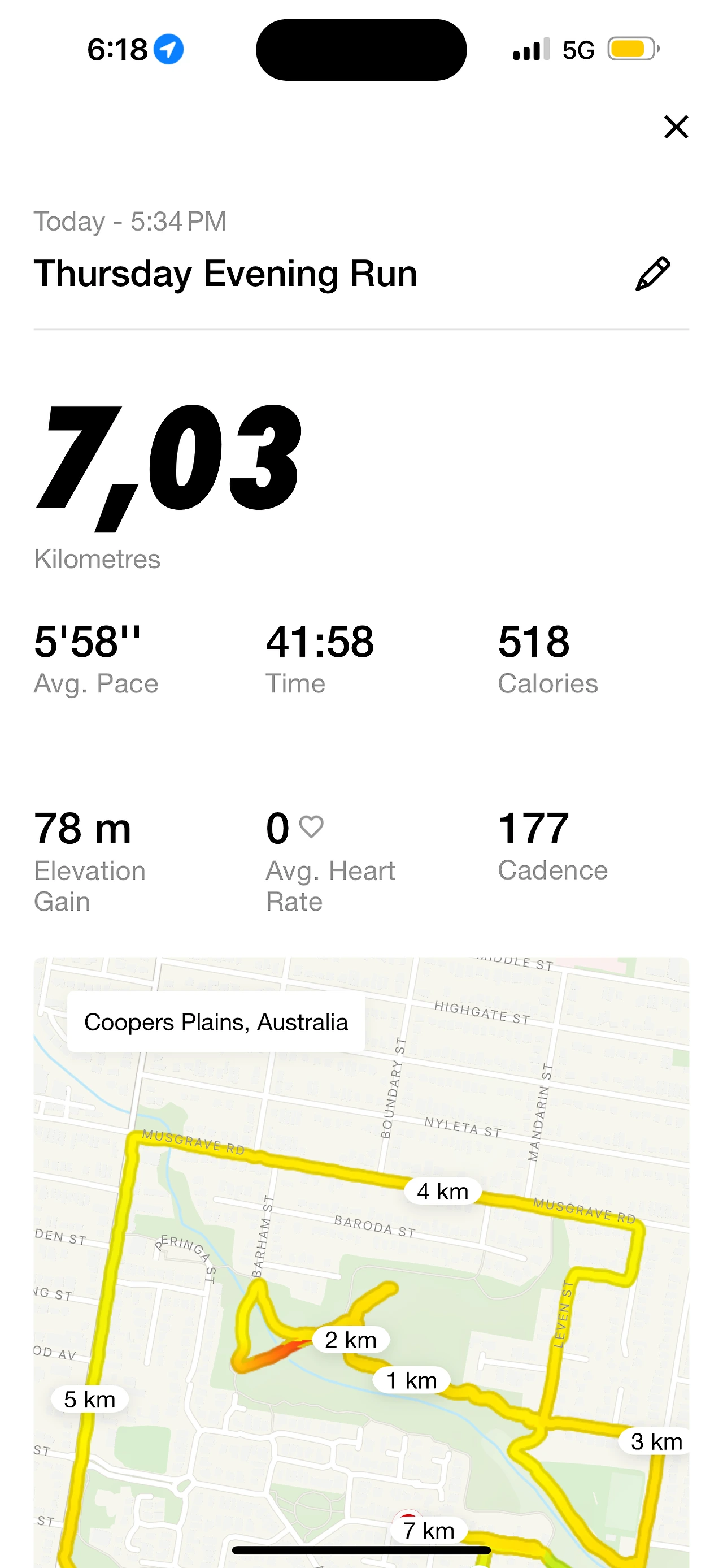 ‘7.03km / 평균 페이스 5’58”’
